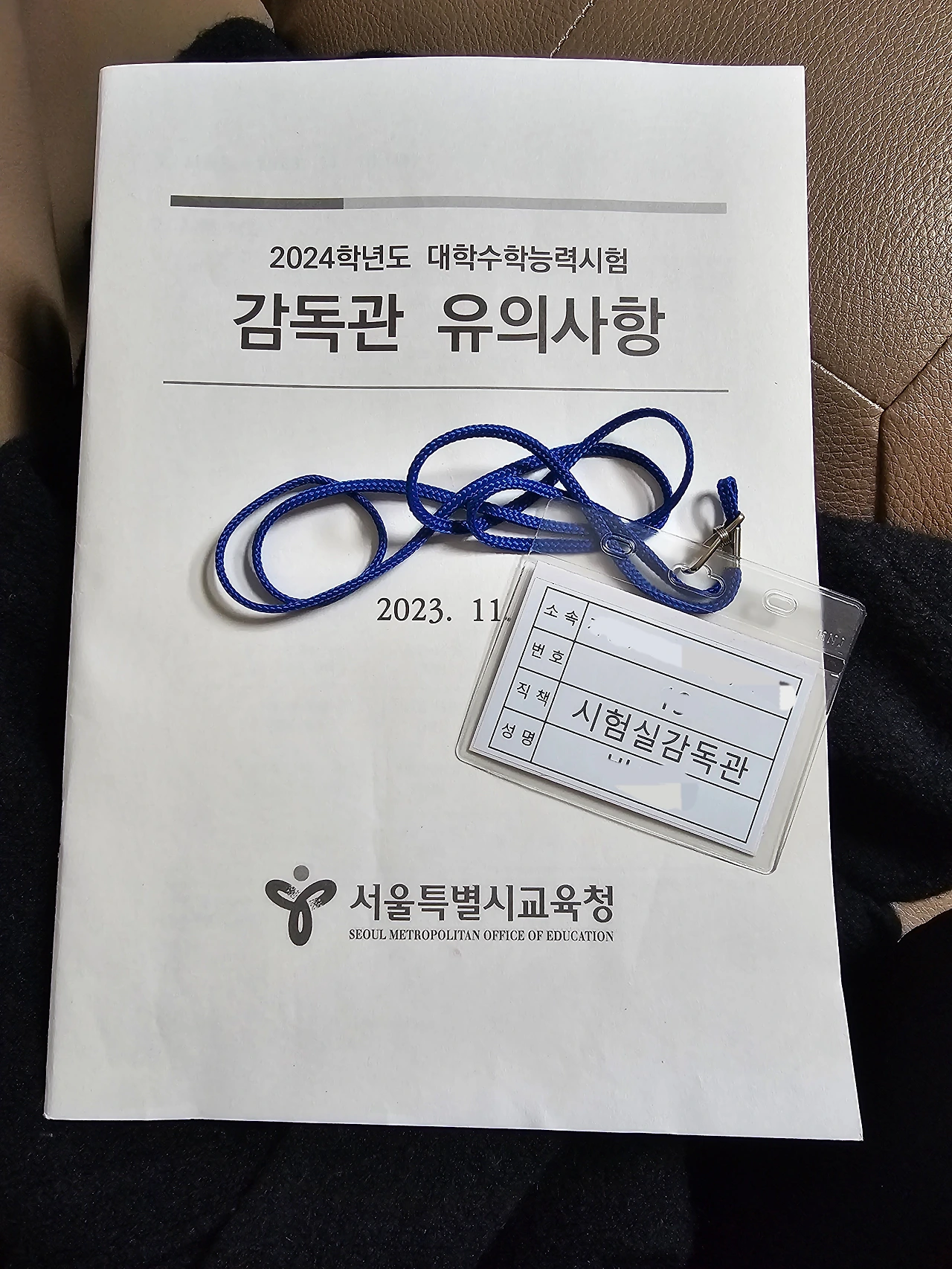 나는 교직에 늦게 입문한 터라 수능 감독이 올해 처음이었다. (재작년은 1년차라 감독 x, 작년엔 예비였다가 차출되지 않았다)