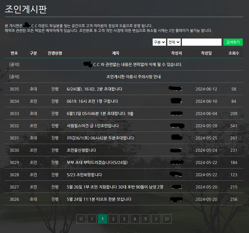 약간의 골프 실력이 생겨 필드에 나가게 되면 가장 곤란한 것이 바로 4명의 팀을 구성하는 일이다. 우리나라 골프장은 외국 골프장과 다르게 무조건(거의 대부분) 4명을 한 팀으로 예약을 받고 있다. 간혹 2~3인 플레이가 가능한 골프장도 있긴 하지만 기본은 무조건 4명이다.