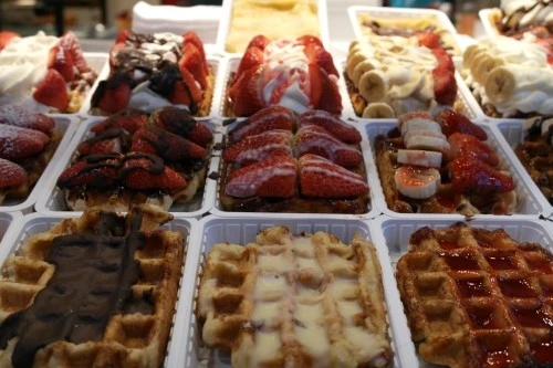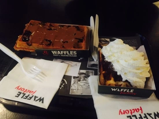 식사가 끝났으면 당연히 디저트도 먹어야지! 우리는 저녁을 다 먹고 벨기에의 명물인 와플을 먹으러 근처에 보이는 와플 체인점, '와플 팩토리'로 들어갔다. 기대하면서 기다렸는데 막상 먹어보니 별로였다. 세상에, 체인점은 보통 최소한 평타는 쳐야 하는거 아닌가?! 다음날 알게 된건데, 길에서 파는 와플들이 백배 천배 더 맛있다. 벨기에에 가거든 와플팩토리는 가지 말고 길거리 와플을 사먹을 것!