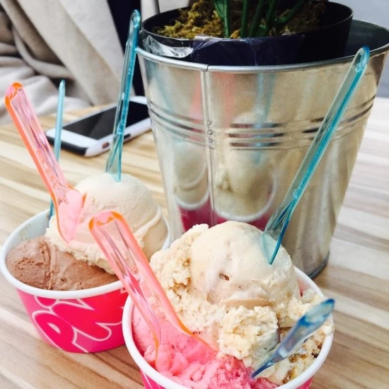 아무튼, 시시콜콜한 잡담을 하며 기분나쁜 일들은 금방 털어 버리고, 우리는 단짠단짠의 정석대로 아이스크림을 먹으러 Pinky로 향했다. Pinky 역시 마켓에 있는 젤라또 가게인데, 이 근방에만 세 군데나 있는 걸 보면 흔한 체인점인 것 같다. 우리는 간만의 화창한 날씨를 즐기며 야외 테이블에서 젤라또를 먹었다. 오늘의 기온은 무려 16도! 네덜란드에서 정말 보기 드문 날이니만큼 많은 사람들이 야외 테이블에 앉아 여유를 즐기는 모습을 볼 수 있었다.