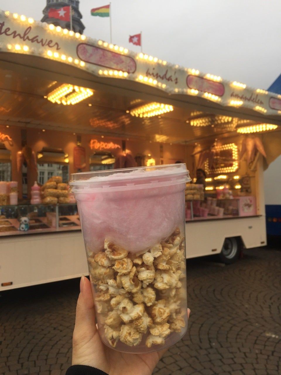 어쨌든 내일부터는 카니발 주간이라 수업도 없겠다, 나와 지은이는 산책겸 마켓 광장으로 슬렁슬렁 기어나갔다. 카니발 준비가 한창인지 푸드 트럭들이 많이 와있었는데, 솜사탕+카라멜 팝콘을 팔길래 하나 사먹었다. 이런거 먹으니까 괜히 축제 기분이 나고 설렜다.