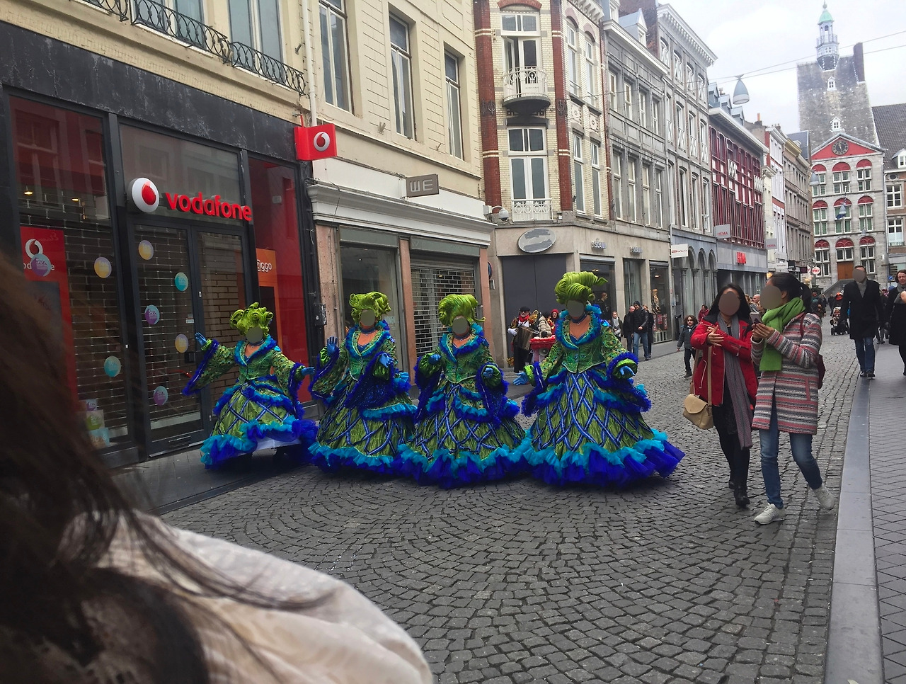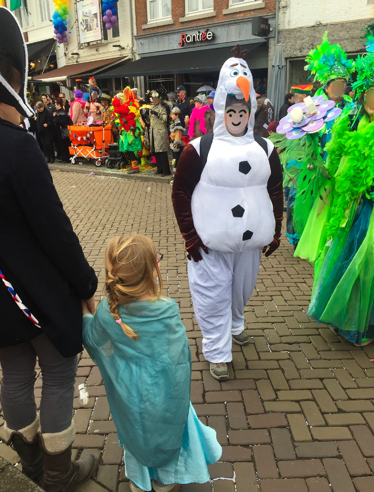 하늘은 우중충했지만, 사람들은 어른 아이 할 것 없이 정말 들떠 있는 것처럼 보였다. 특이한 의상은 기본이고 다들 화려한 페이스 페인팅까지 한 채 길거리를 돌아다니는 모습이 신기했다. 아래부터는 윤진이가 카메라로 찍은 사진들인데, 내가 찍은 것들보다 카니발 당일의 분위기가 훨씬 잘 느껴져서 윤진이의 허락을 맡고 포스팅에 올린다ㅎㅎㅎ 이번에는 가릴 얼굴들이 많다보니 스티커 대신 일괄 블러칠을 했다.