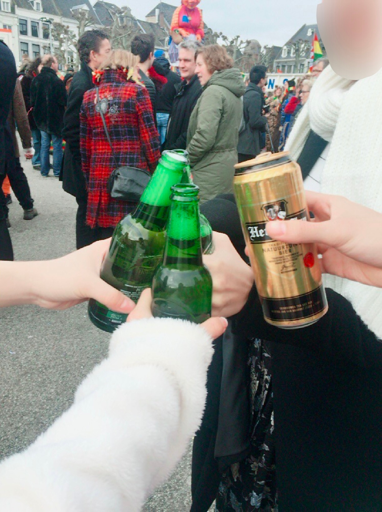 네덜란드에서 길거리 음주는 평소같으면 금지겠지만, 카니발에는 아무 상관이 없는지 다들 그냥 밖에서 맥주를 벌컥벌컥 마셨다. 우리도 마켓에 도착해서 준비성있게 챙겨온 맥주를 꺼내 땄다.