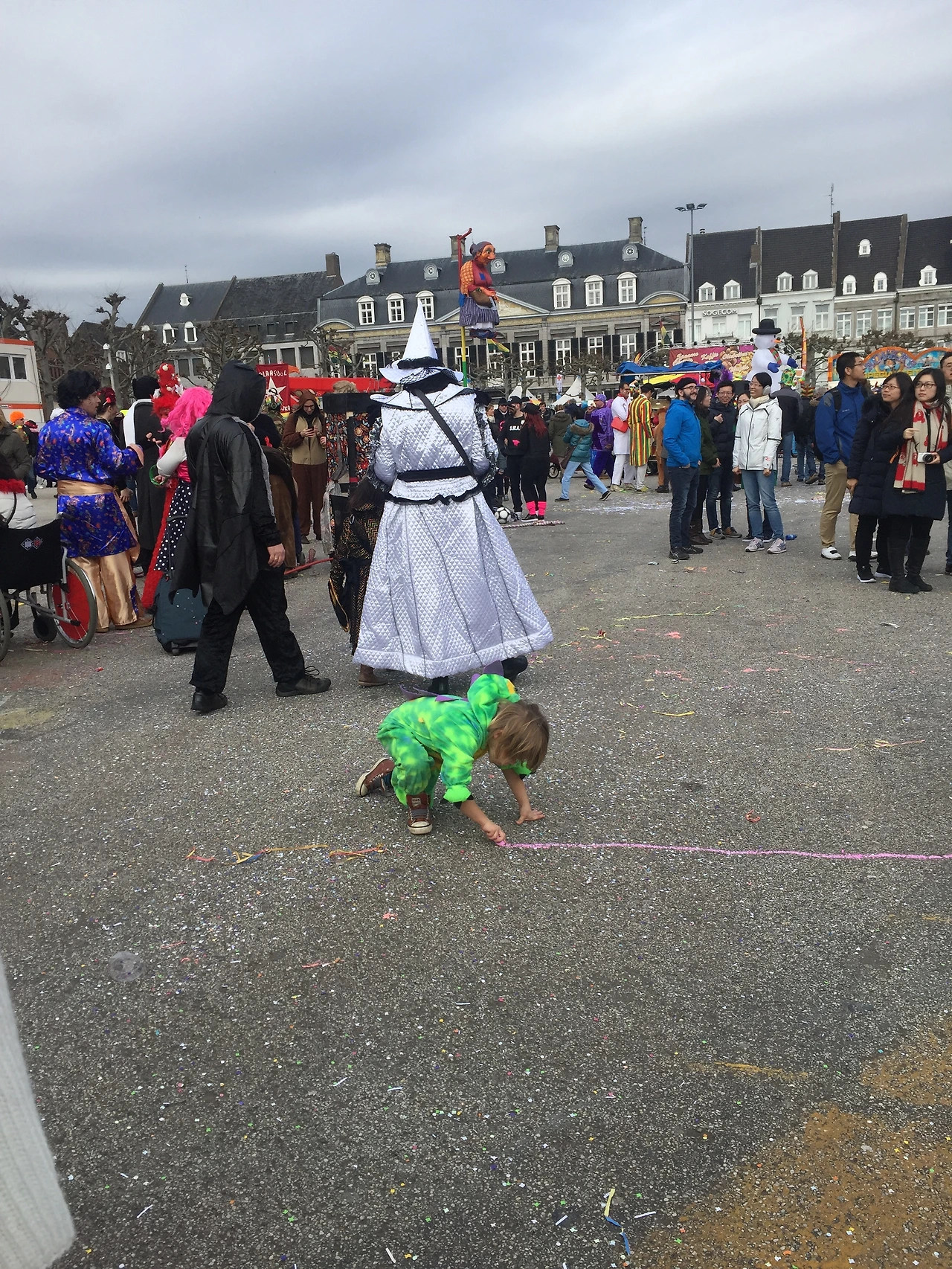 어제는 대망의 카니발 첫날! 마스트리히트의 모든 가게가 쉬고, 모든 사람들이 분장을 하고 거리로 나와서 미치는 바로 그 카니발이다. 그렇지만 아침부터 찌뿌둥한 하늘은 비를 뿌려대기 시작했고, 덩달아 쌀쌀해진 날씨는 기껏 차려입은 한복 위에 겉옷을 입게 만들었다. 그래도 나름 카니발을 위해 맥주 한 궤짝을 구비해 놓은 만큼, 우리는 설레는 마음을 안고 한 손에는 맥주병, 다른 한 손에는 우산을 들고 마켓 광장으로 향했다.