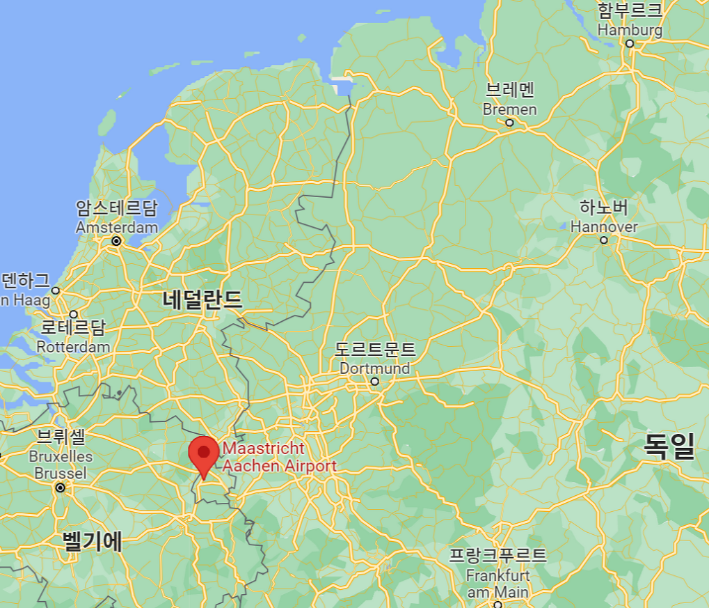 늦은 오후 비행기인 덕분에 점심도 만들어서 먹고 밍기적거리다가 마스트리히트-아헨 공항으로 향했다. 마스트리히트에 있는 공항이지만 이름이 왜 저모양인지는 아래의 지도를 보면 알 수 있다.