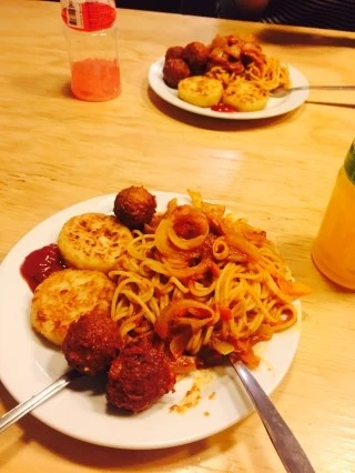 ▶점심 : 해시브라운, 미트볼스파게티, 모구모구 망고맛(진짜 맛있음)