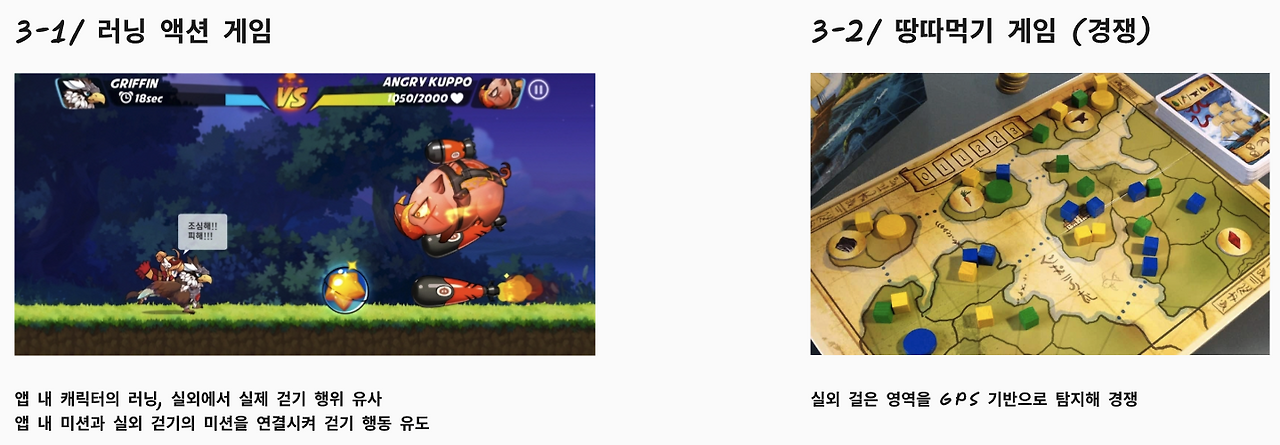 기획하고자 하는 서비스의 1차 목적은 '서비스를 사용하며 재미를 느끼면서 걸을 수 있게 하자'였다. 그래서 목표하는 타깃층을 고려해 목적에 착 부합하는 재미요소를 발굴하는 과정이 필요했다.