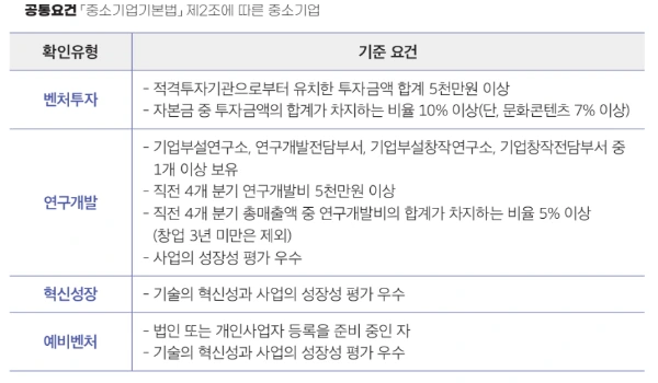 벤처기업유형이 다양해서 그 안에만 속하면 되거든요.