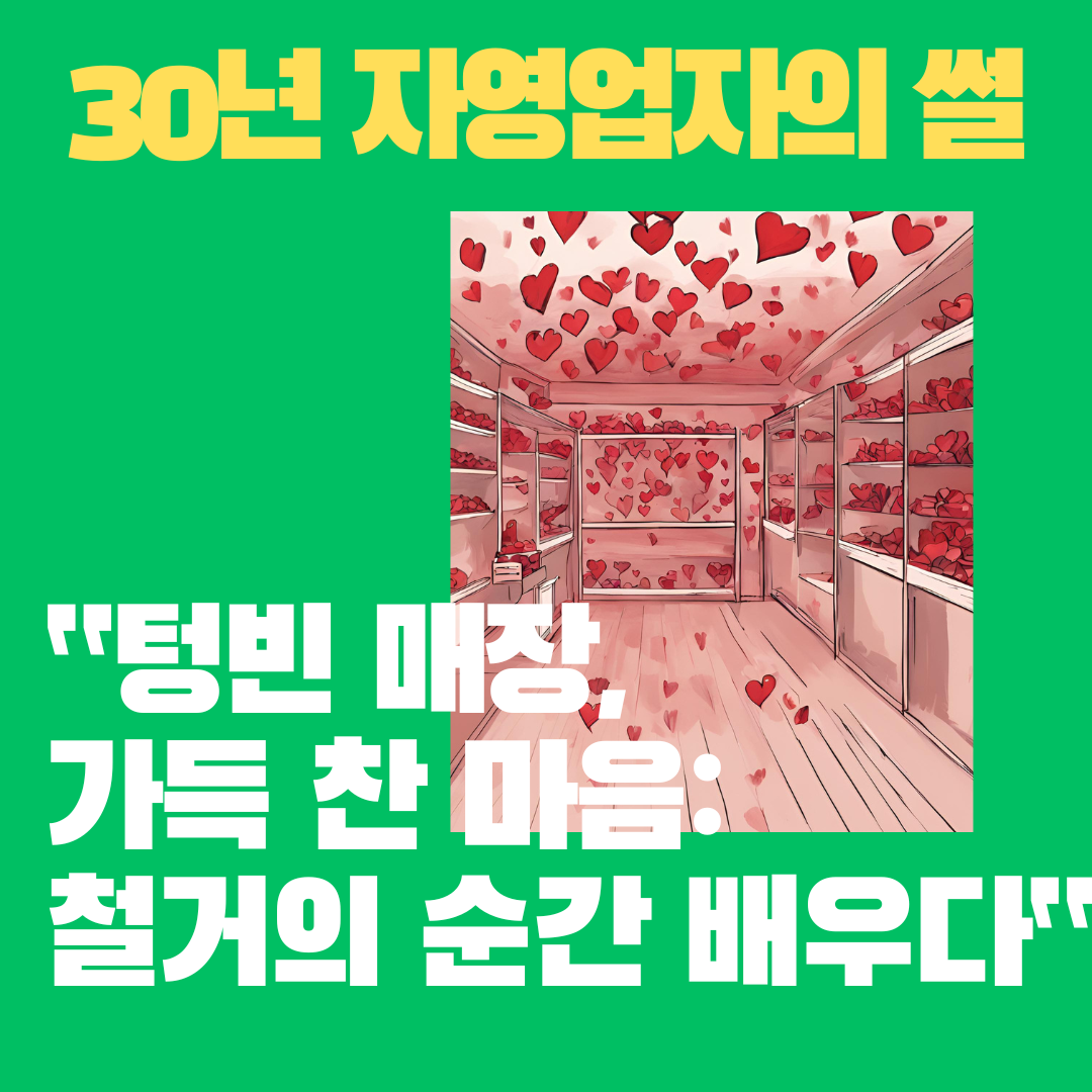새벽 3시 30분, 나는 시끄럽게 울어대는 알람에 놀라 후다닥 일어나 잠에 취한 두 아들을 깨워 서둘러 시동을 걸고 매장으로 향했다. 도착하자마자 철거준비에 맘이 급했다. 40여분은 족히 걸리는 거리는 여전히 고요했으나 내 마음은 더 깊은 심연 속으로 빨려 들어갔다. 어둠이 짙어지는 이곳에, 3년간 머물렀던 30여 평의 익숙한 이 공간에, 나는 지금 속하려 한다. 나는 어디에도 시선을 두지 못하고 그냥 그렇게 흔들리고 서 있다. 시선을 고정하지 못하고 흐느적거리는 내 맘을 눈치챈 4개의 다리가 바닥을 떡하니 붙들고 나의 두 다리를 끌어당겨 앉혔다. 내 맘도 덩달아 그 자리에 털썩 주저앉고 말았다. 텅텅 빈 몰의 썰렁함은 이런 내 맘을 고스란히 대변한다.