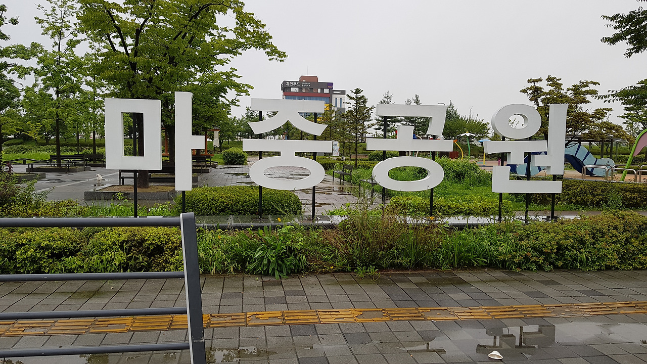 비가 오는 마중공원은 역시나 사람이 없다. 비가 와서 바닥에 여러 곳 웅덩이도 있고 쉽지 않은 길이겠지만 기분은 너무 좋다.