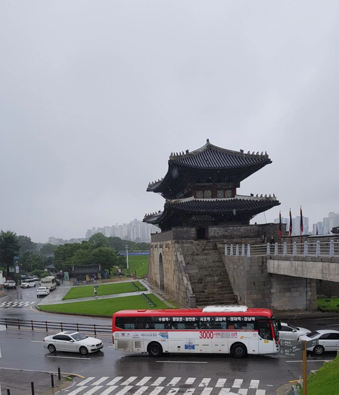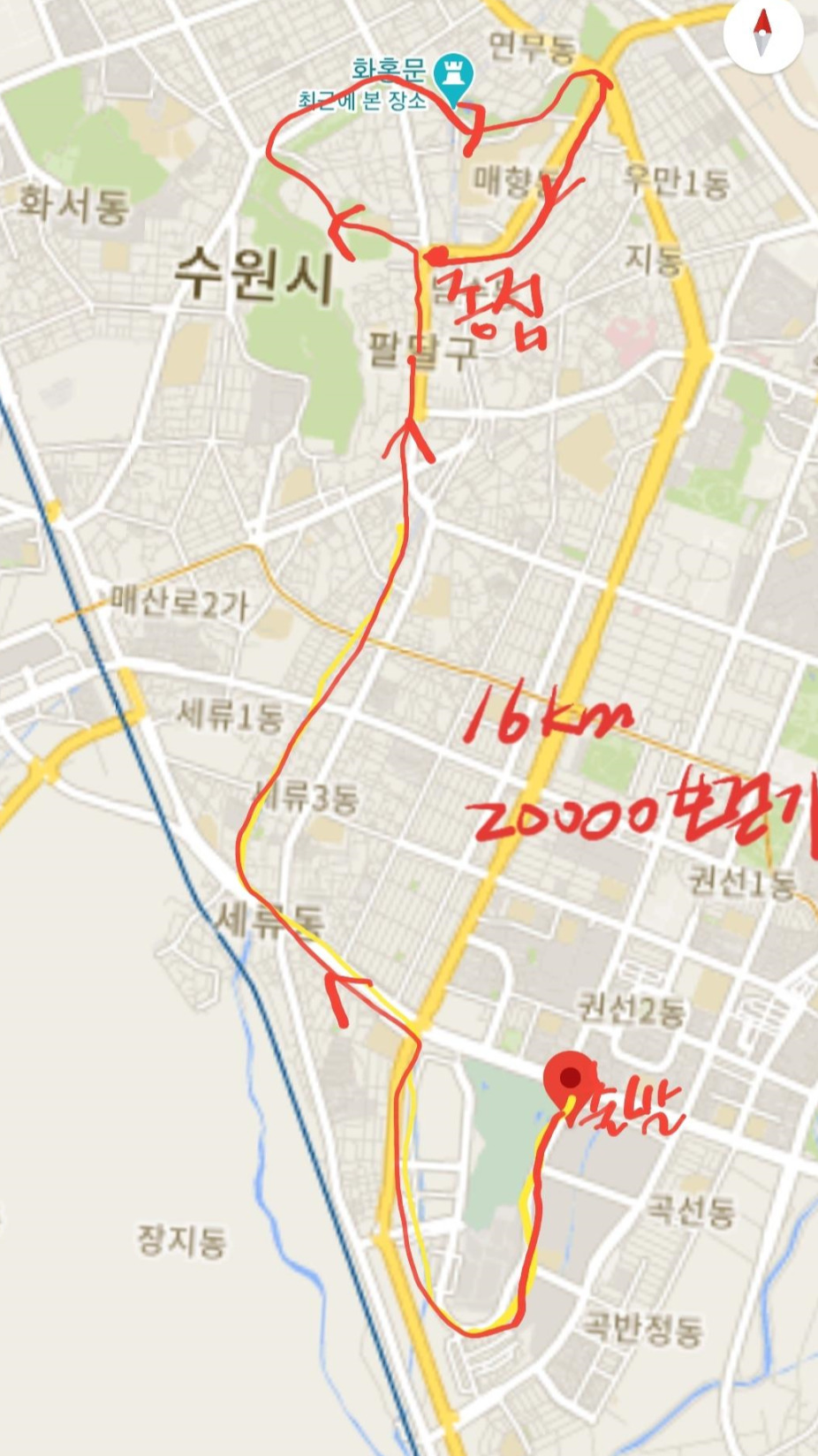 장마 때문에 걷기도 멈추는가 했는데 언니와 동생이 비가 와도 폭우만 아니면 함께 걷자고 연락이 와서 오늘은 비를 뚫고 우리 여자 셋이서 걷는다. 우산도 챙기고 마스크도 챙기고 우리의 시작은 권선동 아이파크부터 마중공원을 지나 수원천을 따라 걷다가 수원 화성의 팔달문(남문), 화성행궁, 화서문(서문), 장안문(북문), 방화수류정, 연무대, 창룡문(동문) 그리고 다시 남문까지로 잡았다.