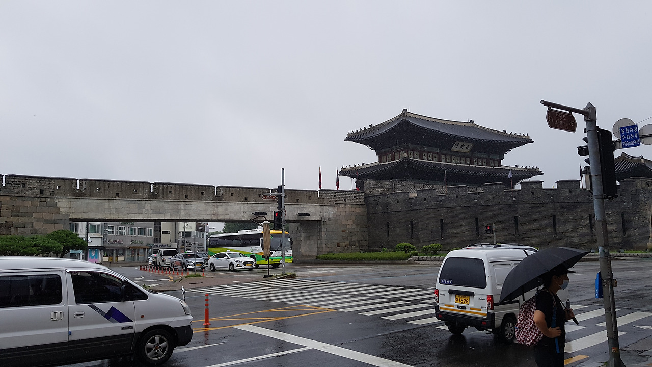 동문을 거쳐 남문으로 향하며 비가 조금 왔지만 이렇게 비가 와서 더 운치가 있어 보이고 얼굴도 타지 않아서 더더욱 걷기에 좋았던 것 같다. 수원화성을 한번 걸어봐야지 하며 제대로 걸어보지 못했는데 오늘 전체는 아니더라도 중요 화성 문화유적지를 걸어보며 눈으로 새겨 볼 수 있어서 정말 좋았다.