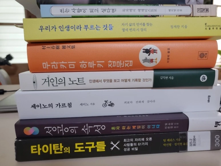 둘째, 책을 읽습니다. 독서, 글쓰기, 자기 계발, 에세이, 경제 서적까지 궁금한 것들에 대해서 읽고 있습니다. 하루에 2~3시간은 책을 읽고 메모하는 시간으로 보내고 있습니다. 집안일을 정리하고 저녁 8시에 책상에 앉으면 큰아들이 집에 오는 11시까지 쭉 앉아 있게 되더라고요. 아들이 고3이라 저도 공부하게 됩니다. 책은 읽으면 읽을수록 욕심이 생기더라고요. 읽고 싶은 책의 목록이 점점 늘어나고 있습니다. 독서 욕심이 읽는 속도보다 크기가 커지고 있습니다. 책의 무게에 눌려 살면 안 되는 데 말입니다.