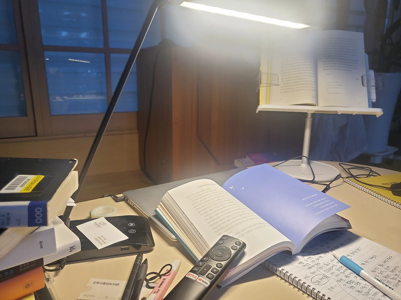 책상 정리 좀 하고 찍을 걸 아쉬움이 들지만 이게 제 모습입니다.