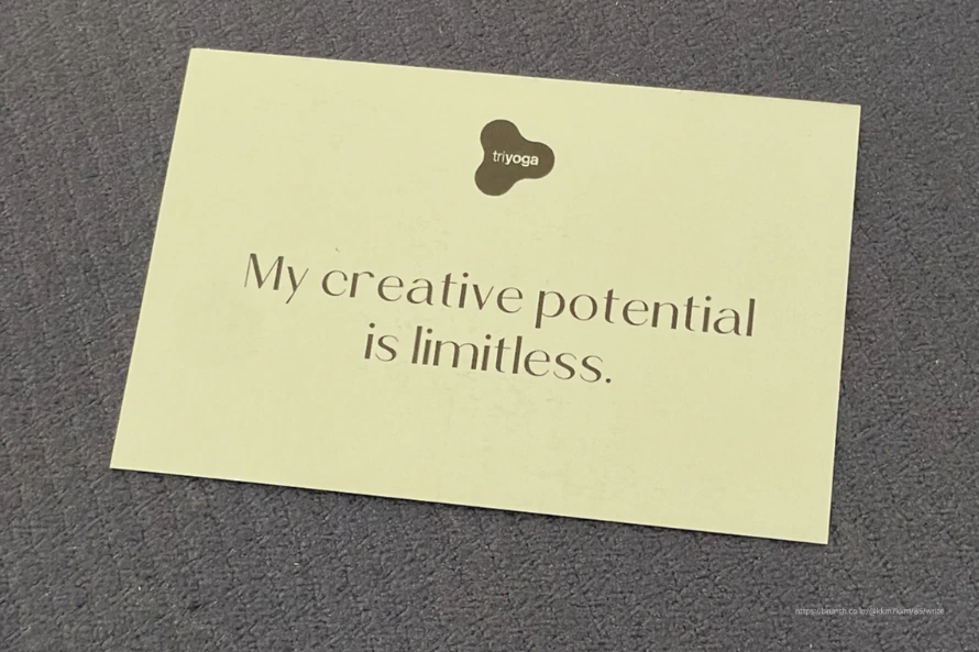 오늘 아침 요가 수업을 갔더니 미리 세팅된 매트 위에 사진과 같은 글귀가 랜덤 하게 적힌 쪽지들이 자리마다 하나씩 놓여있었다.