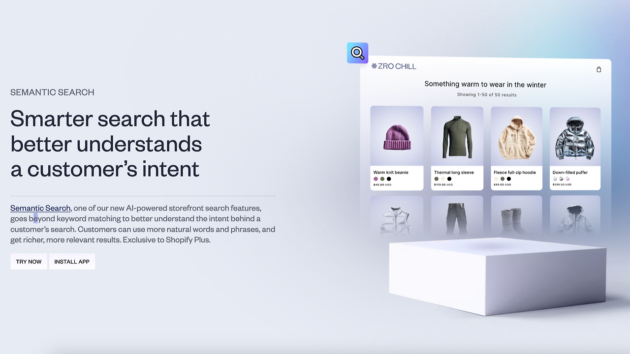 가장 관심가는 영역은 검색과 관련된 영역입니다. 쇼피파이는 Shopify Search & Discovery 앱을 통해서 Semantic Search 기능을 제공합니다. '의미 검색'으로 직역할 수 있는 이 기능은 단순한 키워드 일치를 넘어서 검색과 관련한 고객의 의도를 이해합니다.