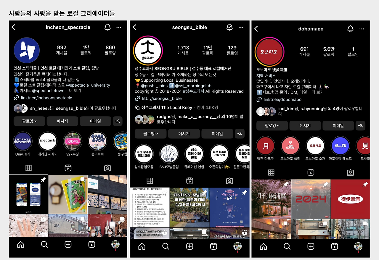 또한 내 주변지역의 식당정보를 따로 찾는 것도 쉽지 않습니다. SNS에 올라온 맛집이 지역 단위로 구분되거나, 내 주변지역의 식당을 바로 추천하지는 않습니다. 내가 따로 '마포', '성수' 등 분류를 하거나 지도앱에 등록하지 않는다면, 콘텐츠를 보고 관심 가는 맛집 정보를 정리하는 것도 손이 많이 갑니다.