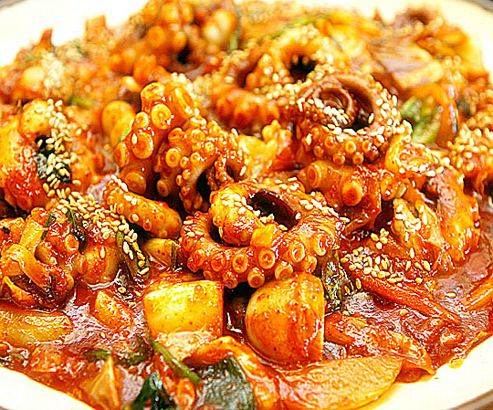 매콤한 낙지볶음 냄새가 자욱한 작은 낙지집에 사람이 빼곡하게 차 있는데, 게다가 여자는 저 혼자뿐인 거예요. 뭔가 그 기세에 눌려버린 촌 여자가 어리바리하게 있는데, 큰 접시 가득 낙지볶음이 도착했죠.