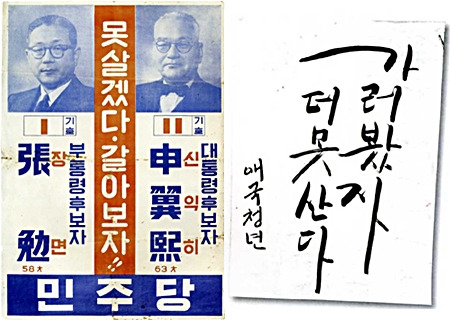 시골 작은 마을에서 살던 어린 제게는 참 신기한 풍경이었죠. 6.25 전쟁통 와중에도 선거가 치러졌고, 휴전 이후 50년대는 정말 선거가 많았어요. 거의 매해, 늦어도 한 해 걸러 한 번씩 대통령 선거, 국회의원 선거, 지방의원 선거가 이어졌습니다.