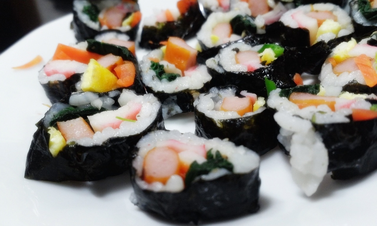 김밥 초보 주제에 김발도 없이 마는 것을 보고 어머니가 혀를 차며 그예 한 마디 하십니다.