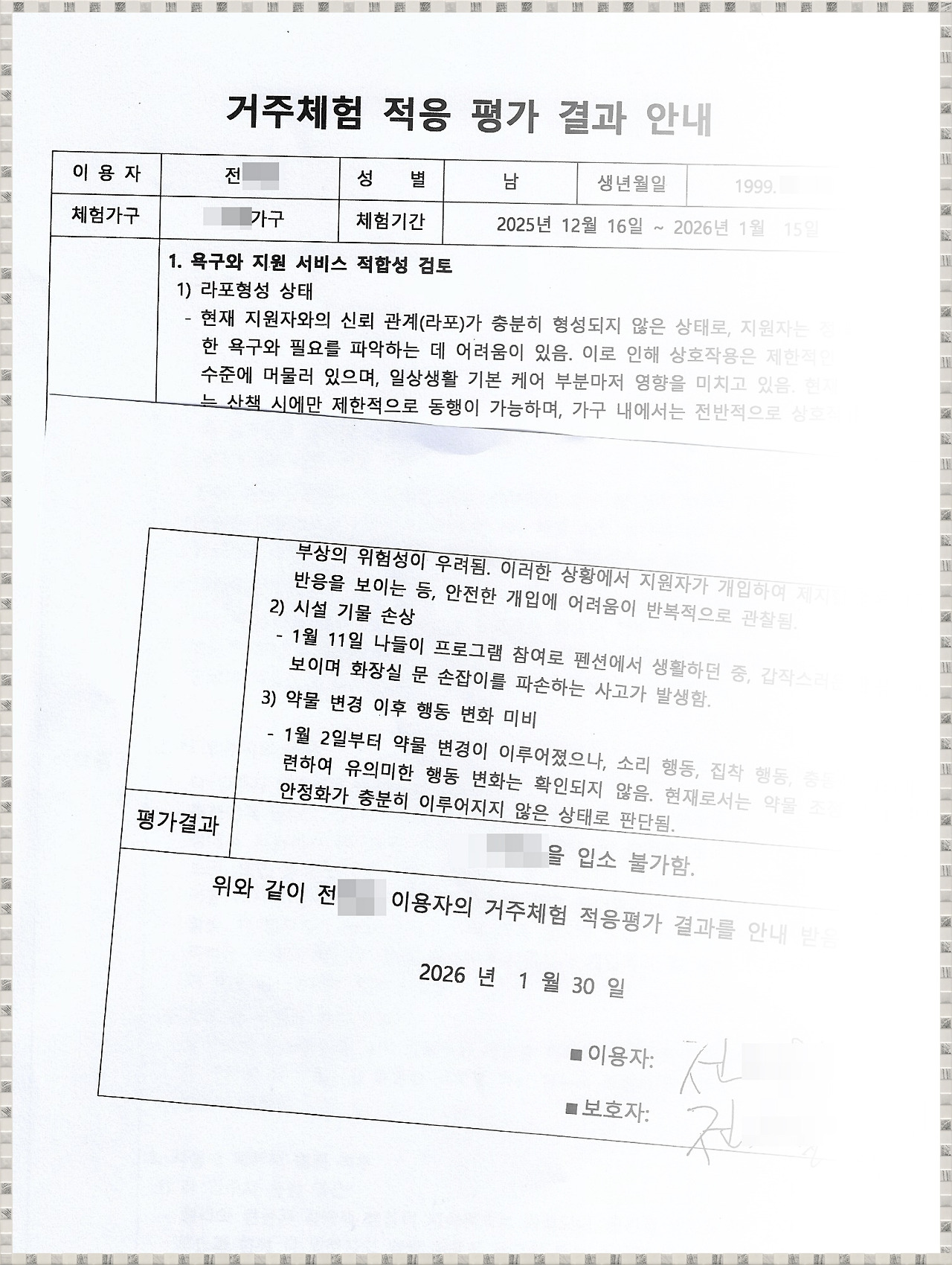 입소 불가