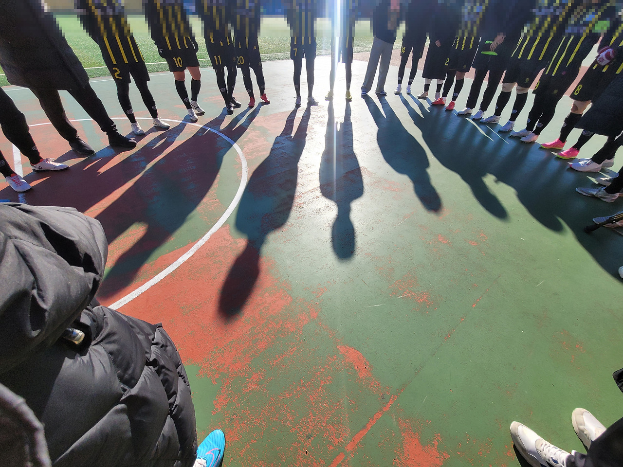 경기 시작직전에 동그랗게 모여서 파이팅을 외친다.