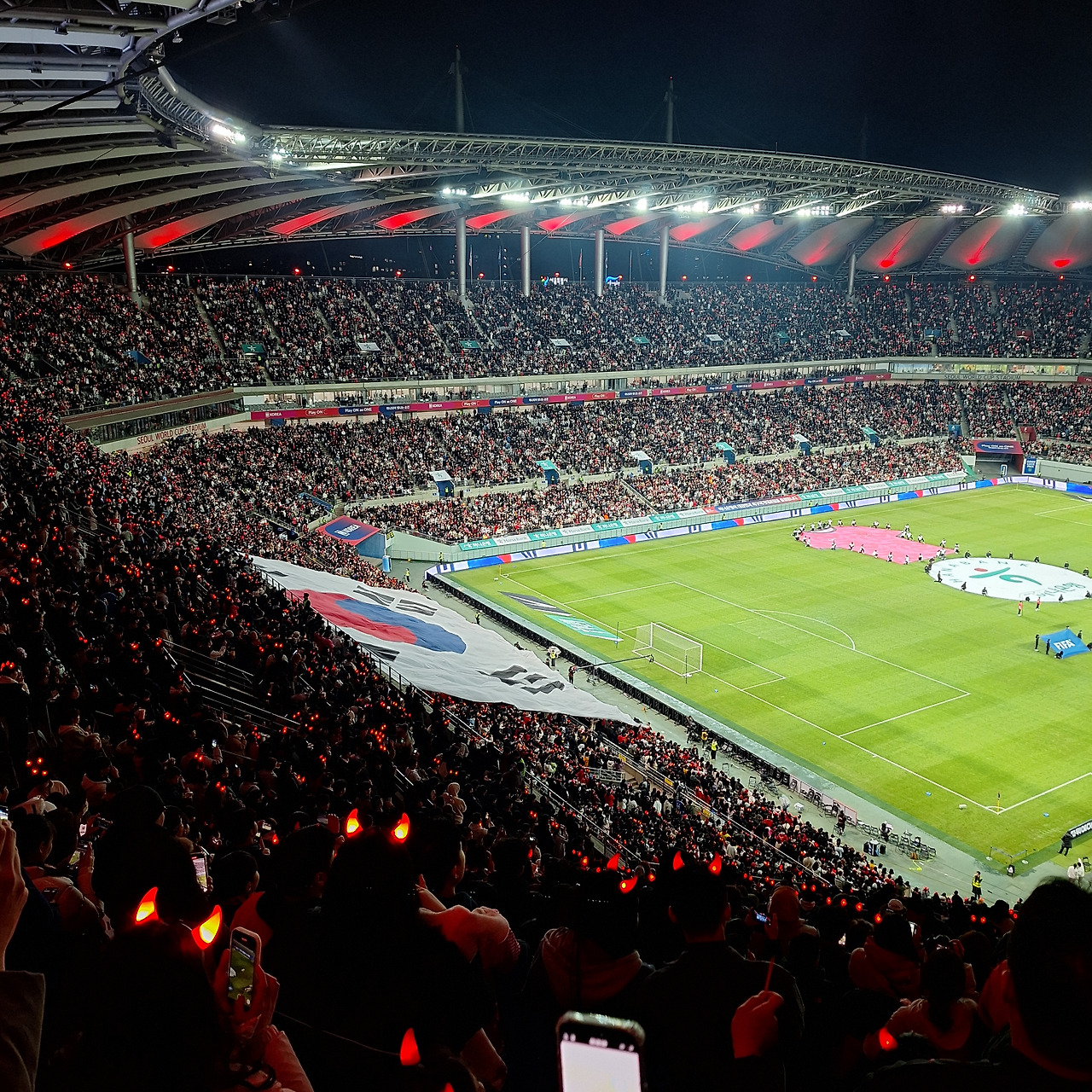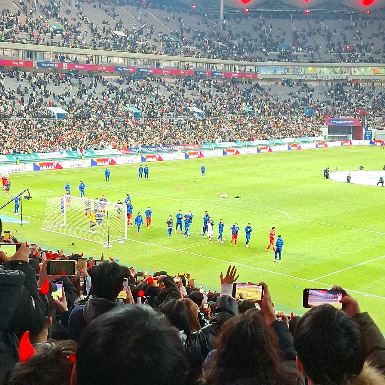 아직 롱패딩을 입어야 하는 3월 말의 날씨였지만, 경기장은 뜨거운 응원 열기로 가득했다. 확실히 현장만의 매력을 실감하는 순간이었다. 분위기를 타고 함께 목청을 높여 대~한민국을 외쳤다. 초대형 태극기가 펼쳐졌을 때는 그야말로 국뽕이 차오르는 순간이었다. 그래, 이 맛에 직관을 하는 거구나.