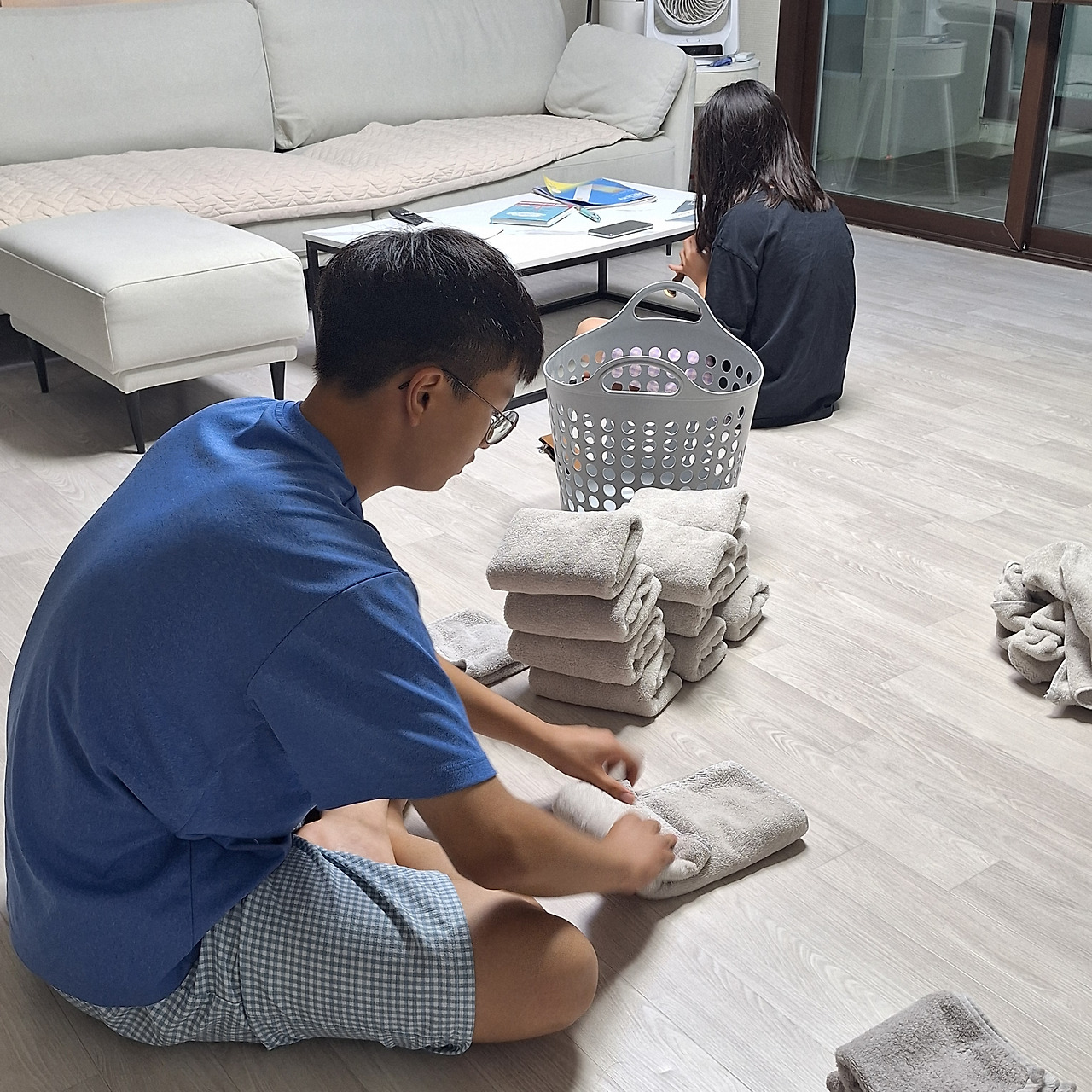 자발적으로 하면 좋으련만, 아직까지는 격려와 부탁으로 겨우겨우 집안일 돕기를 참여하는 중