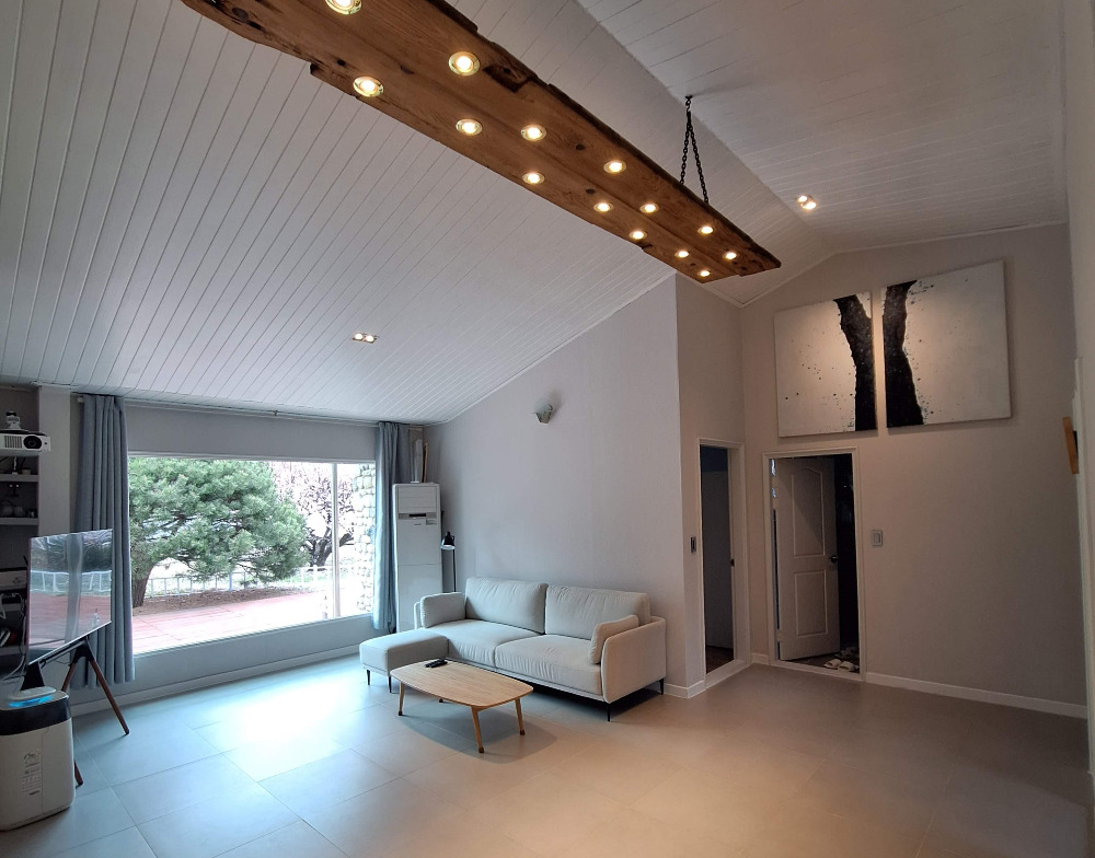 비록 구옥이었지만 내부는 전체 수리 되어 깔끔했고, 높은 층고의 거실과 정원이 잘 보이는 통유리창이 매력적이었다. 마치 고급 갤러리에 온 기분이랄까? 걸어서 5분이면 바다라는 점도 큰 장점이었고, 아이들이 다닐 초등학교도 도보로 근거리에 있어 나쁘지 않았다.