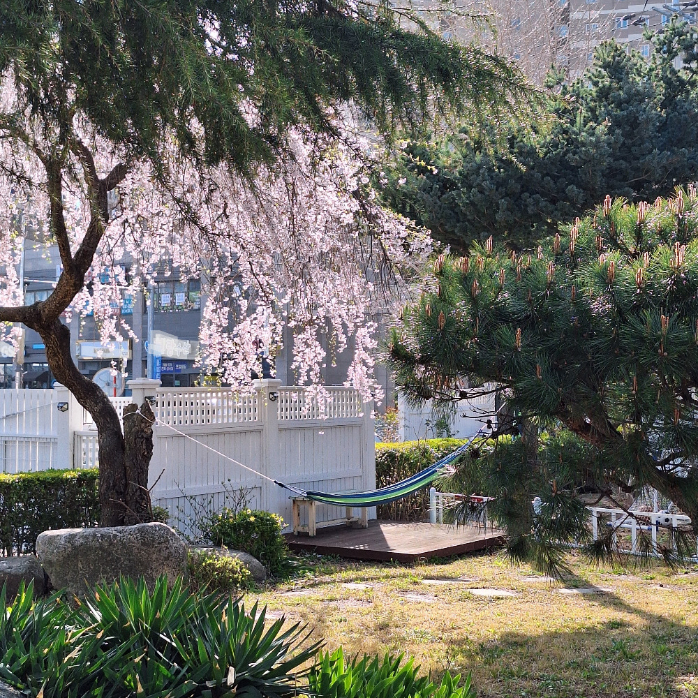 계절의 흐름을 경험할 수 있다는 점은 큰 축복이다. 봄이면 매화꽃을 시작으로 벚꽃나무까지, 아름답다 못해 황홀한 풍경을 매일 마주할 수 있다. 주방의 창문으로 보이는, 그래서 수시로 흐드러진 매화꽃을 실시간으로 감상할 수 있는데 혼자 보기 아까울 정도였다.