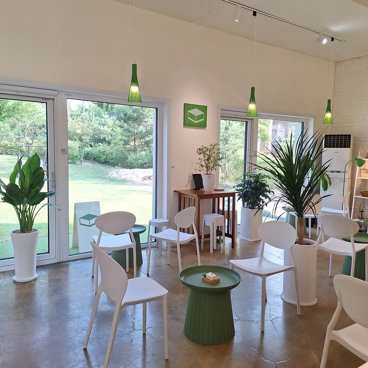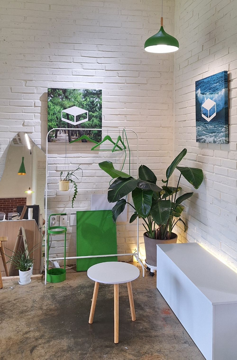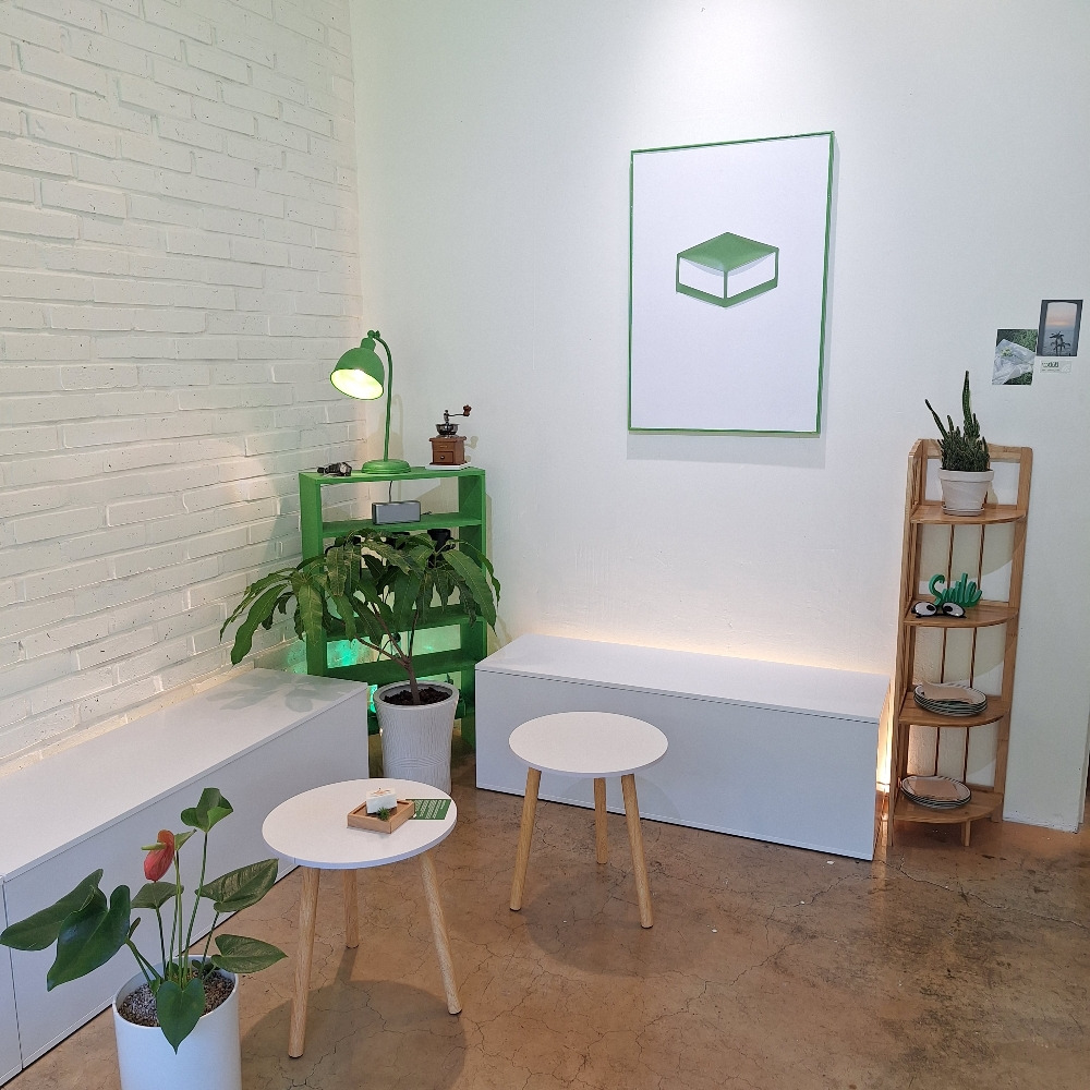 어쨌거나 페인트 시공으로 고생한 덕분에 밝은 느낌을 살리는데 성공! 기존에 있던 가구는 아까웠지만 무료 나눔과 중고거래로 싹 다 처분했다. 소품과 조명등, 테이블 등도 그린톤으로 배치했다. 전체적으로 통일된 색상으로 일관성을 유지했고, 초록초록한 식물들도 곳곳에 배치하여 자연 친화적인 분위기를 연출했다.
