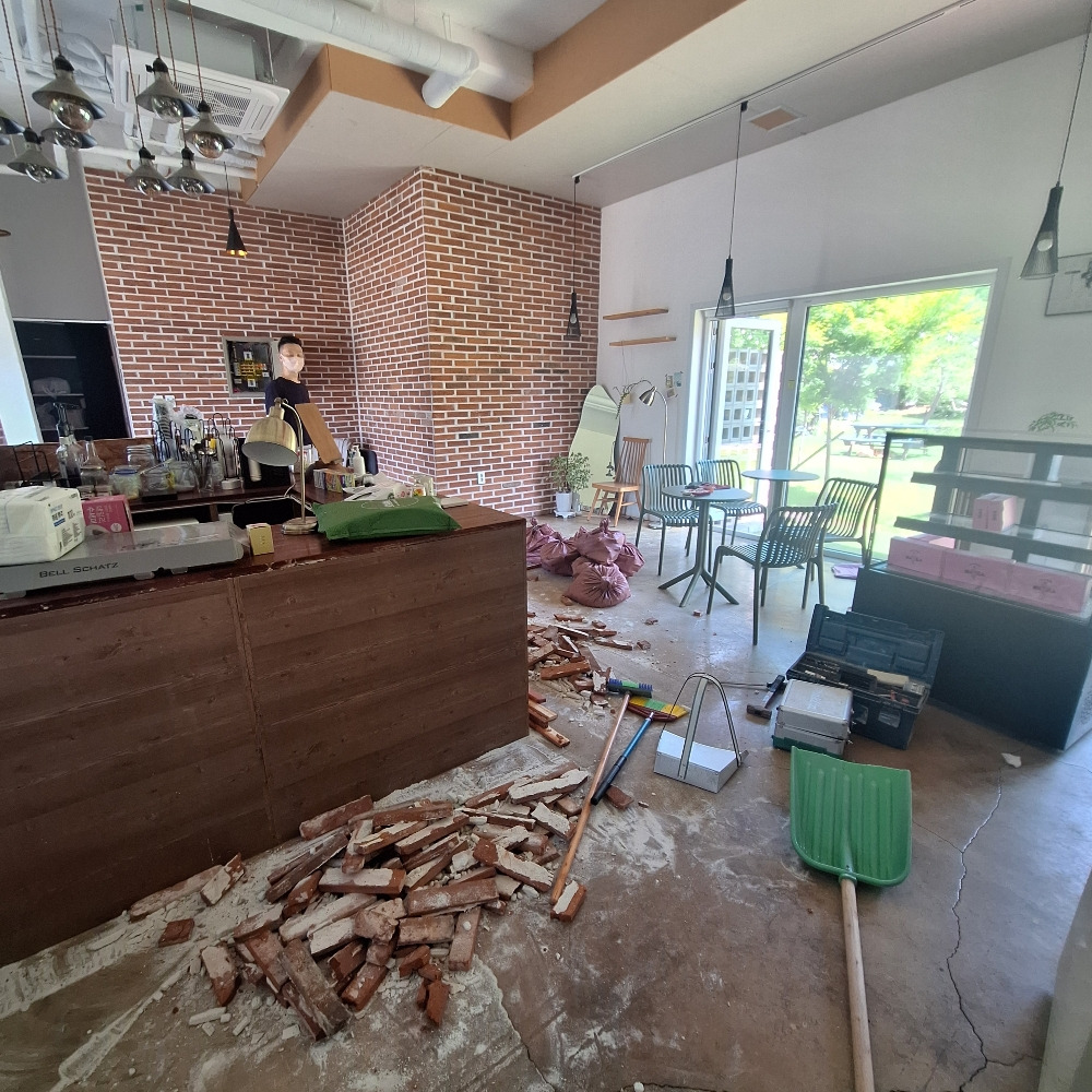 카페를 준비하는 여정은 예상보다 훨씬 험난했다. 이렇게 고생스러울 줄 알았다면 '무조건 신축 건물에 매장을 낼걸'하며 뒤늦은 후회도 했다. 상상했던 공간 구성을 위해 치열한 고민 끝에 우리 부부는 용감하게 셀프 인테리어에 도전했다. 엄밀히 말하자면 반(half) 셀프 인테리어이긴 하다. 인테리어 회사를 운영하시는 시외삼촌께서 우리의 S.O.S에 흔쾌히 응해주셨기 때문이다.