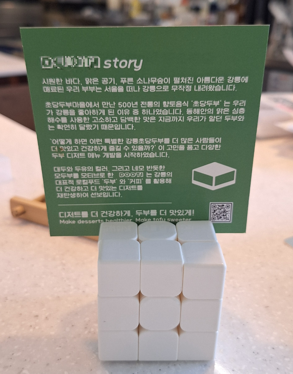시그니처 음료 메뉴인 두부를 활용한 음료는 진작부터 가정에서도 일터에서도 내내 테스트 중이었다. 컵 모양도 여러 가지 형태로 달리 해보고, 허브 장식도 고심해서 고르고, 다양한 재료로 최적의 맛과 조합도 찾아갔다. 음료 제조 순서와 적정 용량도 정하는 등 테스트를 핑계로 열심히도 먹었다.