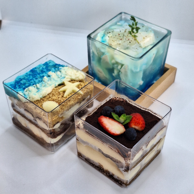 티라미수를 잘 담아낼 수 있는 실용적이면서도 적절한 크기와 모양의 그릇을 찾느라 동분서주했고 마침내 적합한 그릇을 찾았다. 티라미수 특성상 냉동이나 냉장보관이 필수인지라 테이크아웃을 대비하는 게 꽤 신경이 쓰였다. 이 또한 수차레 샘플을 구매하고, 테스트하며 최적의 방식을 찾아갔다. 물론 이 후로도 몇 번 더 업그레이드되었지만.