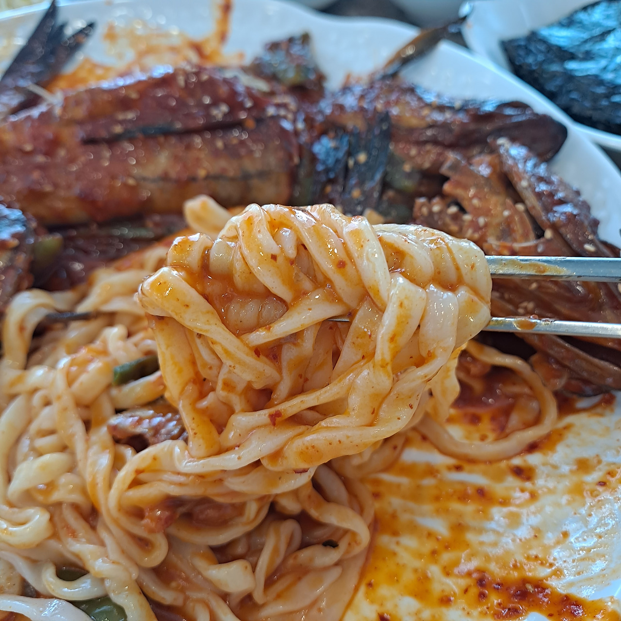 그 매콤하고 알싸한 단짠의 조화는 생각만으로도 입에 침이 고인다. 명태 살도 야무지게 발라먹고 국물에 밥도 쓱쓱 비벼먹을 생각을 하니 벌써 입가에 미소가 절로 난다. 명태조림의 백미는 칼국수 사리! 의외의 조합일 것 같으나 기가 막히게 잘 어울린다는 것.