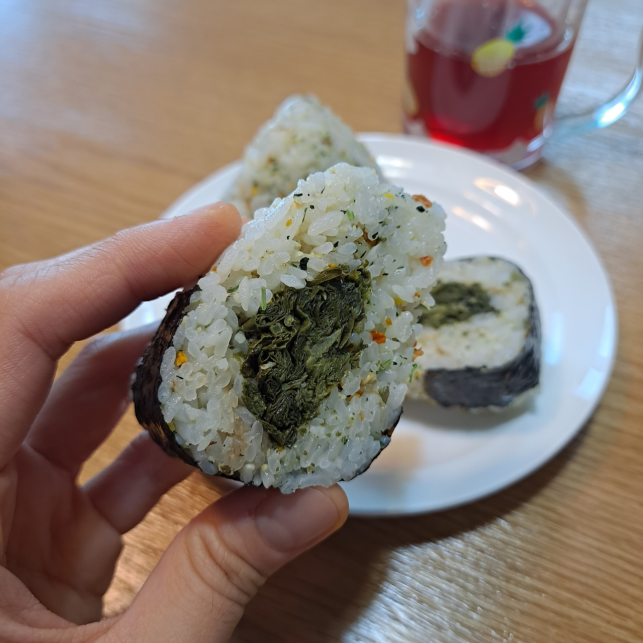 남은 반찬으로 속재료를 채워 넣은 삼각김밥