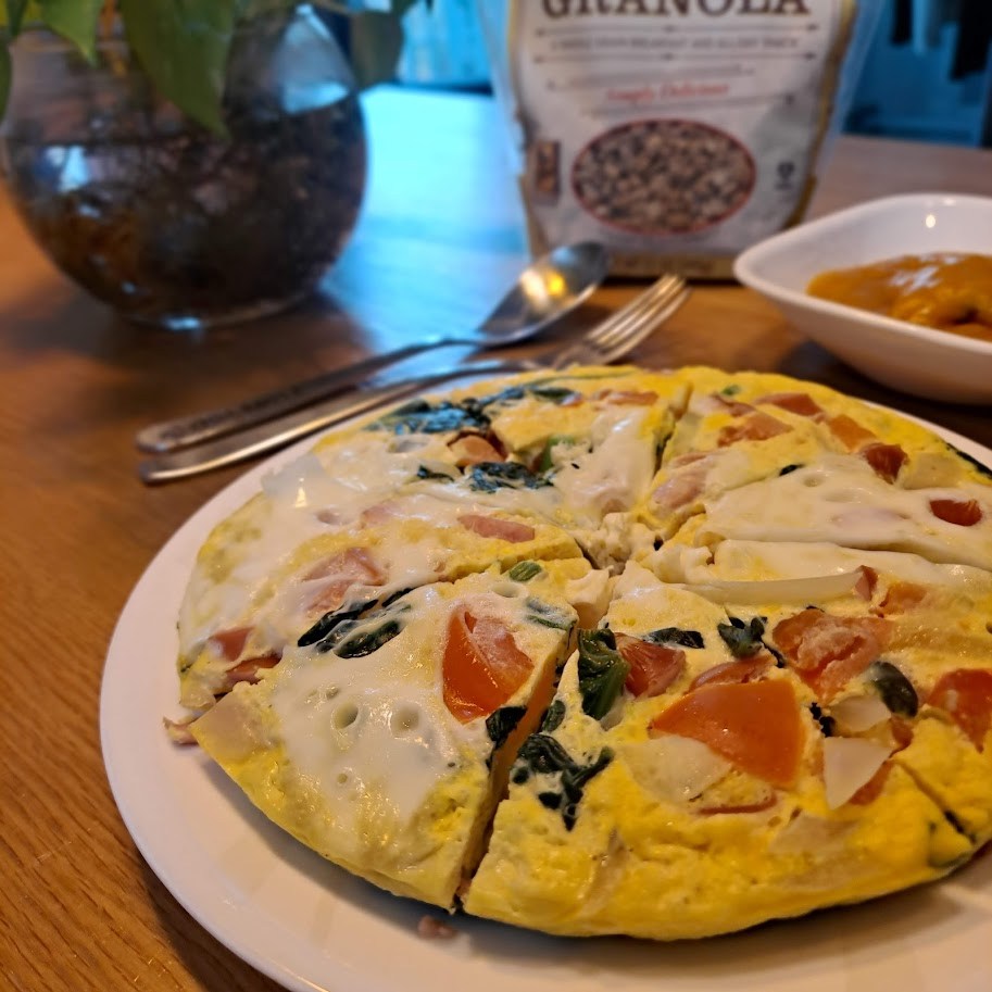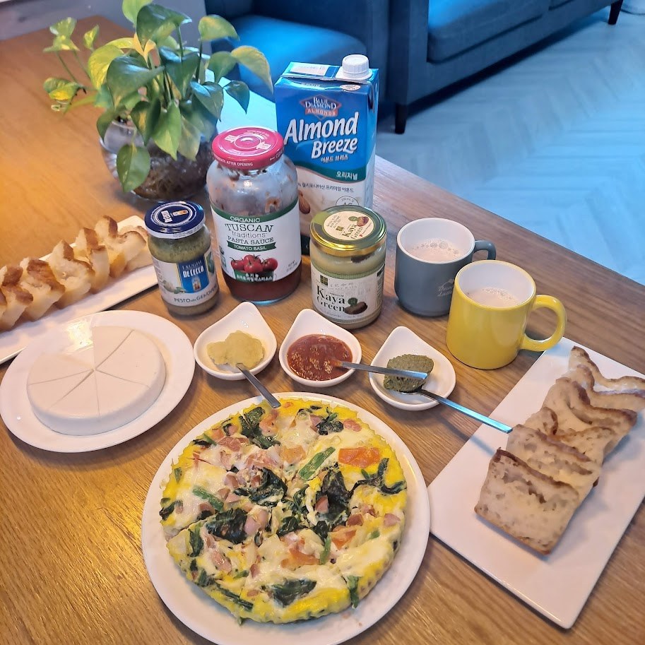 시금치를 비롯한 야채와 베이컨이나 햄을 넣어주면 완성되는 요리이다. 물론 여기에 넉넉한 계란은 필수이다. 마치 피자 모양처럼 보여서 보기에도 예쁘다. 시금치와 양파 등은 후라이팬에 기름 살짝 두르고 볶아주어 숨이 죽게 만든 후 베이컨을 종종 썰어 넣어준다. 토마토도 같이 첨가하니 색깔도 영양도 더 업그레이드 되었다. 약불로 천천히 구워주는 게 포인트. 물론 전기밥솥 찜 기능으로도 가능하다.