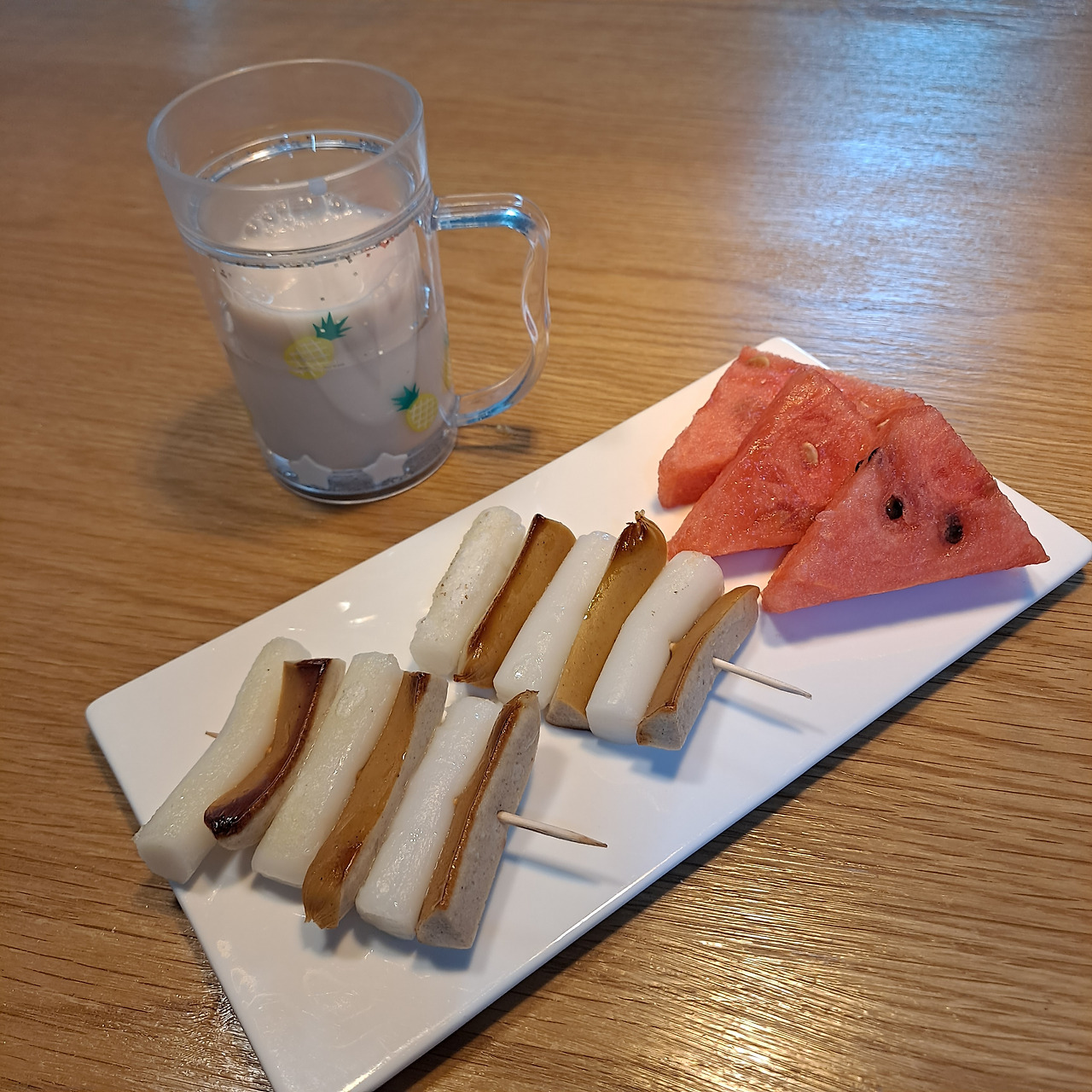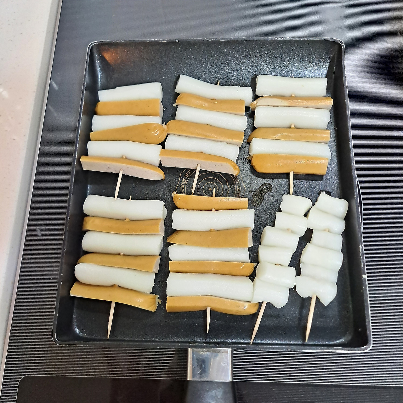 비엔나 소세지도, 일반 햄도, 후랑크 소세지도 뭐든 괜찮다. 떡 또한 가래떡부터 떡볶이떡 까지 무엇이든지 오케이. 가로넓이만 잘 맞춰 잘라주면 그만이다. 꼬치에 재료들을 가지런히 끼워주고 기름을 두른 팬에 노릇노릇 구워주면 끝. 별도의 양념이 필요 없을 정도로 소세지와 떡의 조화는 두말하면 잔소리.