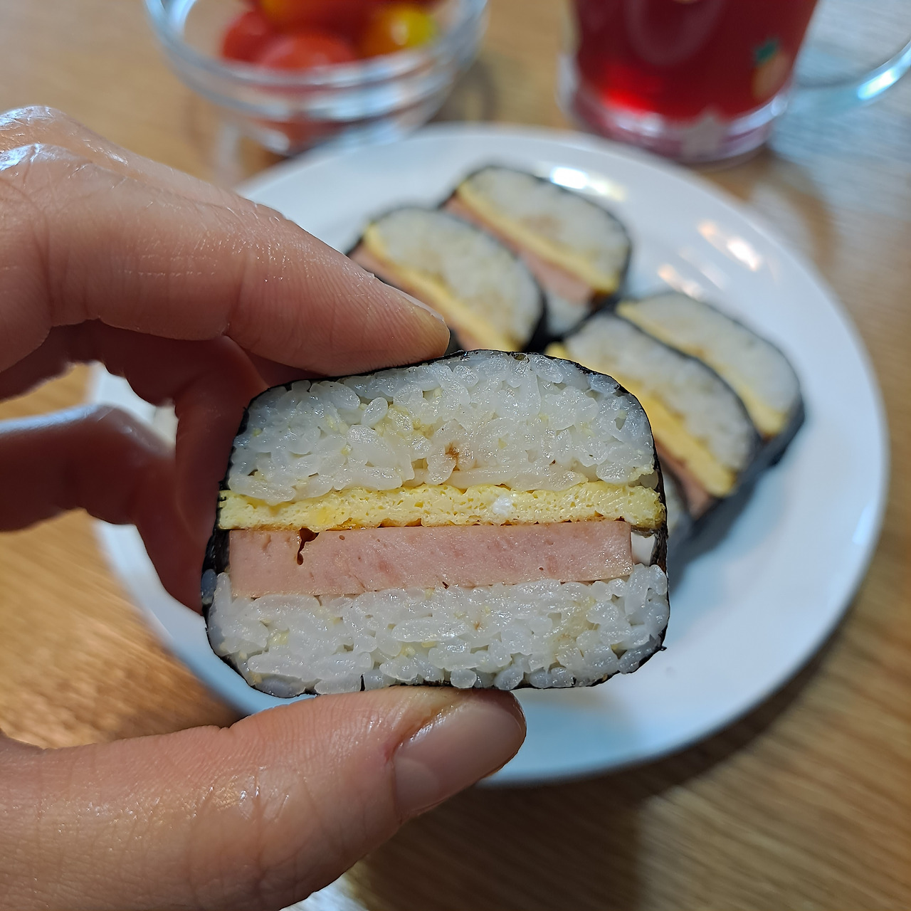 '무스비'라고도 불리는 네모김밥은 역시 김밥 틀이 있으면 좋지만, 혹시 준비되지 않았다면 햄이 담긴 캔을 활용하는 것도 방법이다. 재료는 단출하다. 햄과 계란, 딱 이 두 가지만 있어도 가능하다. 여기에 과일이나 야채를 곁들이면 한 끼 식사로 손색없다. 물론 밥에는 참기름과 소금을 넣어 섞어줘야 훨씬 맛이 좋다. 밥을 꾹꾹 최대한 눌러주는 게 예쁜 모양을 잡는 포인트다.