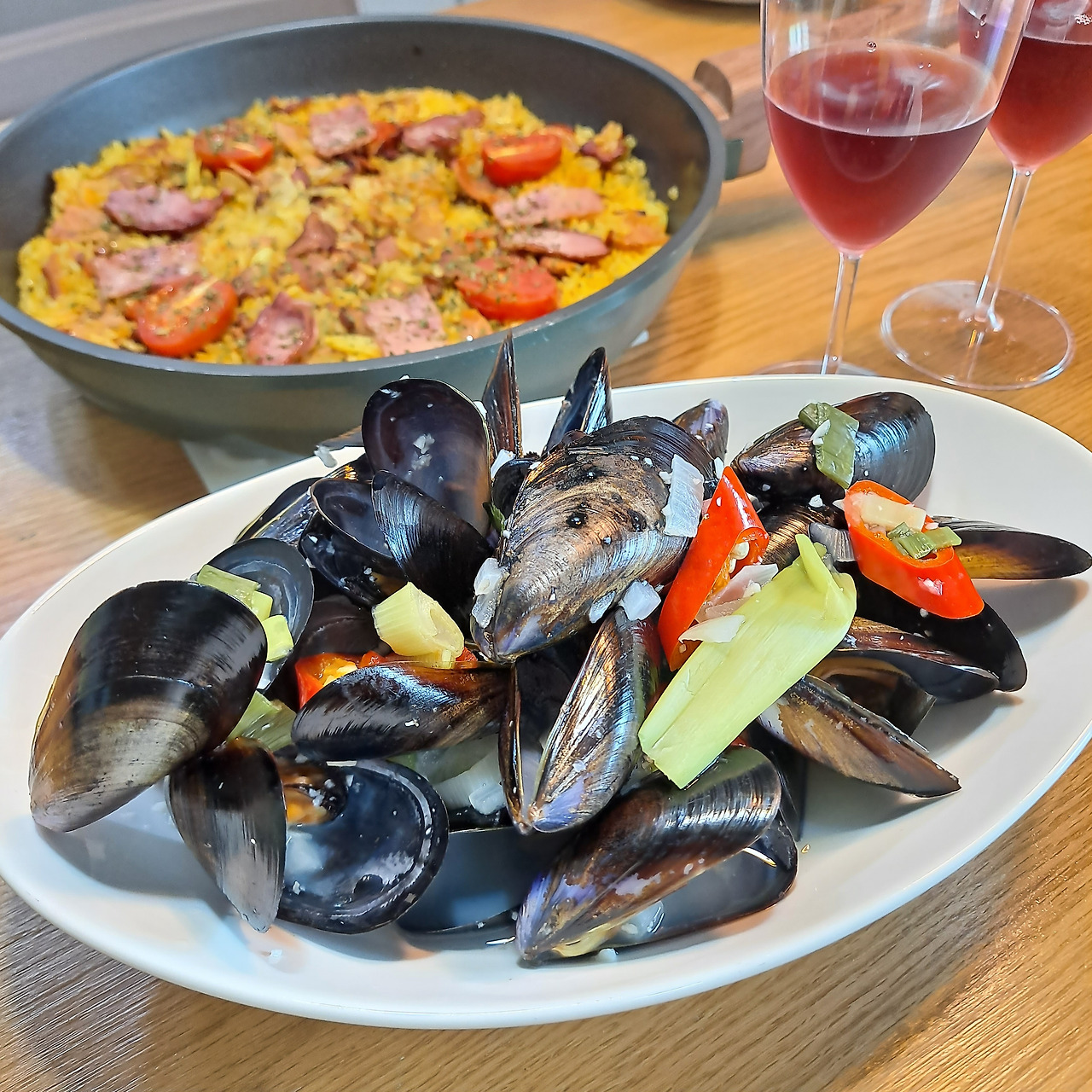 점심은 스페셜 요리! 홍합탕과 덕라이스로 준비한다. 홍합 손질을 부지런히 마치고, 파, 마늘, 고추, 소금 이렇게만 넣고 푹 끓였을 뿐인데 맛이 끝내준다. 이런 감칠맛 나는 국물이 육수도 아니고 맹물로부터 나다니, 홍합의 위대함에 그저 신기했다. 어차피 애들은 맵다고 못 먹을 거 같을게 뻔해서 아예 처음부터 어른 입맛에 맞춰 매칼 하게 끓였더니 그 맛이 기가 막혔다.