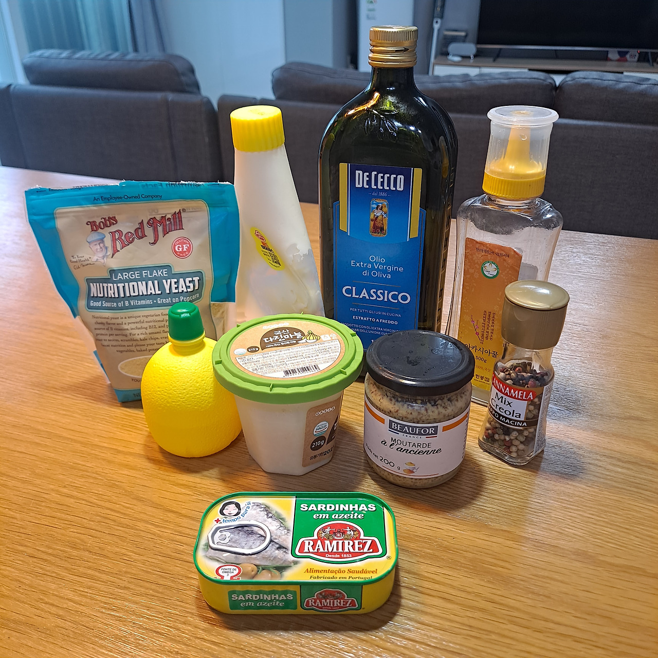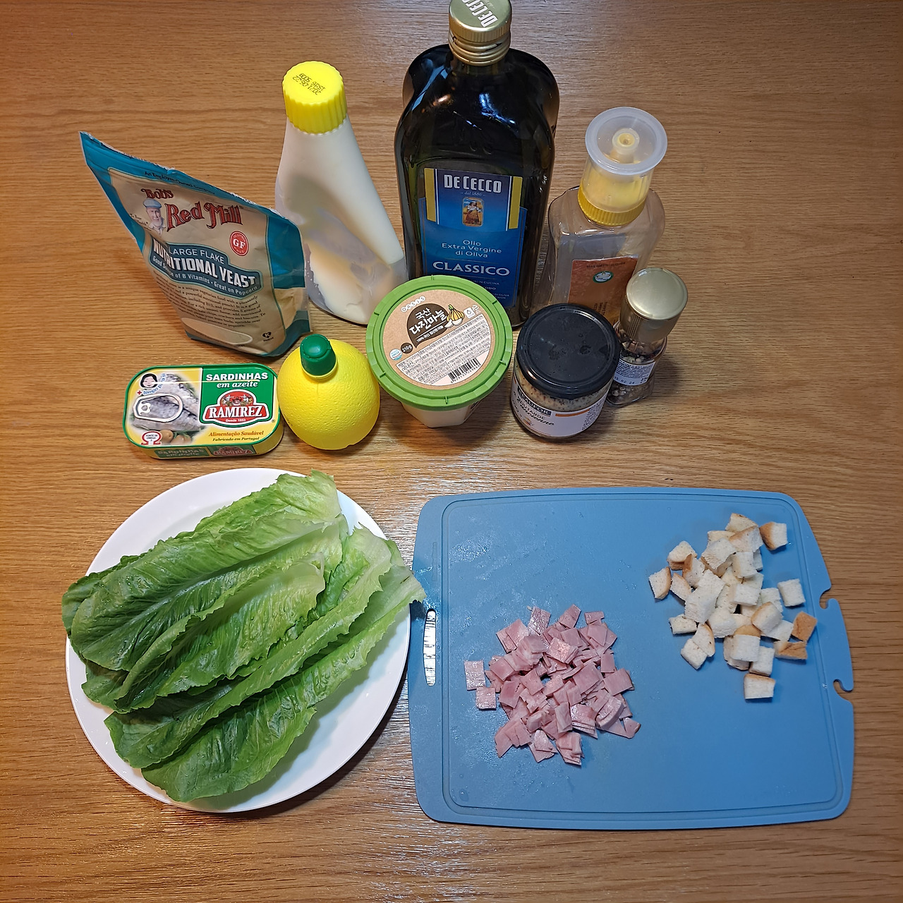 주말 삼시세끼의 대미를 장식할 메뉴는, 바로 시저샐러드와 바질페스토 파스타! 시저샐러드의 소스에는 다양한 재료가 들어간다. 이 중에서도 정어리 통조림(엔쵸비)이 핵심이다. 쉽게 말하자면 참치 같은 맛인데 짭조름하면서도 뭔가 감칠맛이 난다. 원래는 파마산 치즈가루가 있으면 좋은데 그게 없는 관계로 예전에 비건 치즈를 만드려고 사 두었던 뉴트리셔널 이스트로 대신했다.