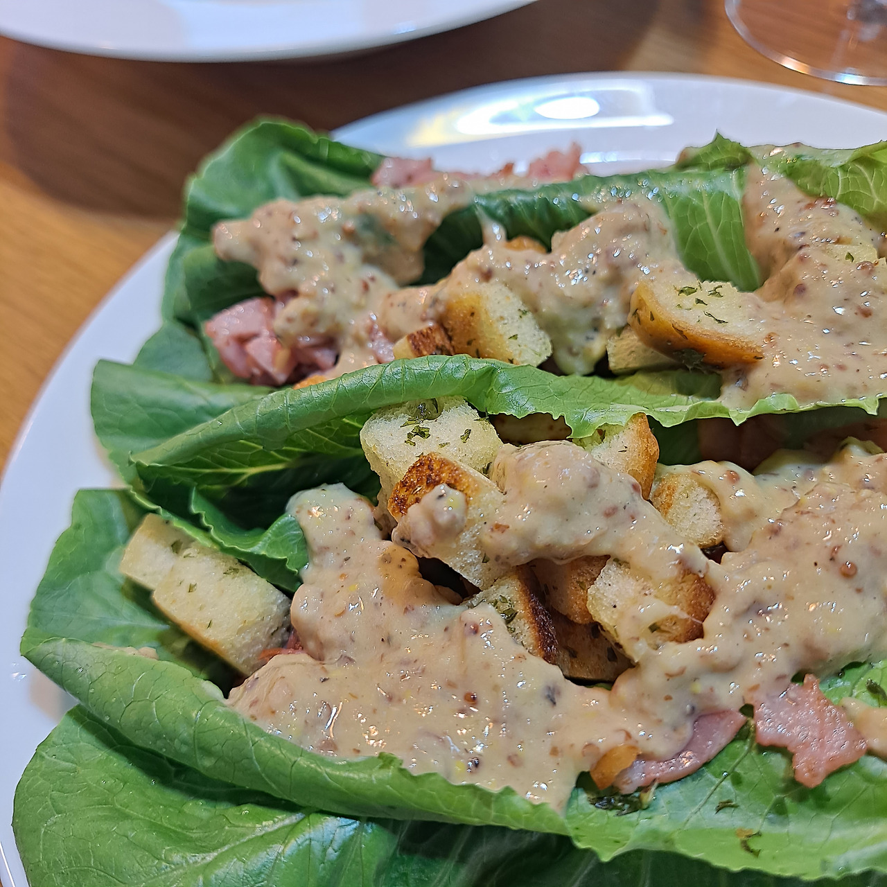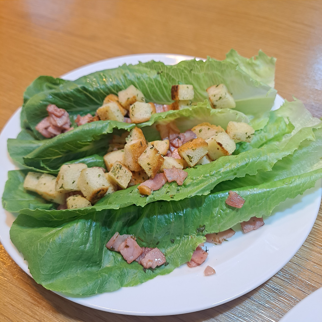 드레싱 듬뿍 뿌려 먹는 시저샐러드는 오래간만에 먹어서인지 더더욱 꿀맛이었다. 아삭아삭한 로메인과 크루통, 그리고 베이컨과 드레싱의 맛은 훌륭했다. 패밀리 레스토랑에서 먹는 것보다 훨씬 고급진 맛이라고 해야 하나.