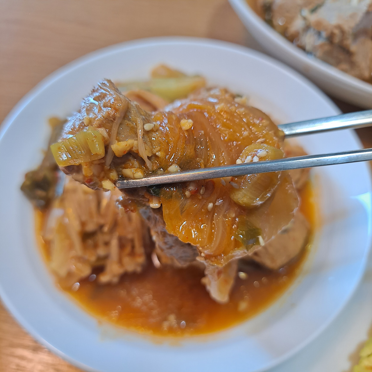 김치찜의 킬포인트는, 바로 들기름! 고소함을 담당해주는 아주 고마운 녀석이다. 역시나, 매칼한 김치찜이 내 입맛에는 제격이었다. 쓰리이는 간장 맛의 씻어낸 김치를 넣은 단짠 김치찜을 아주 좋아했다. 그 까다로운 둘째도 밥 두 그릇을 뚝딱할 정도였으니.