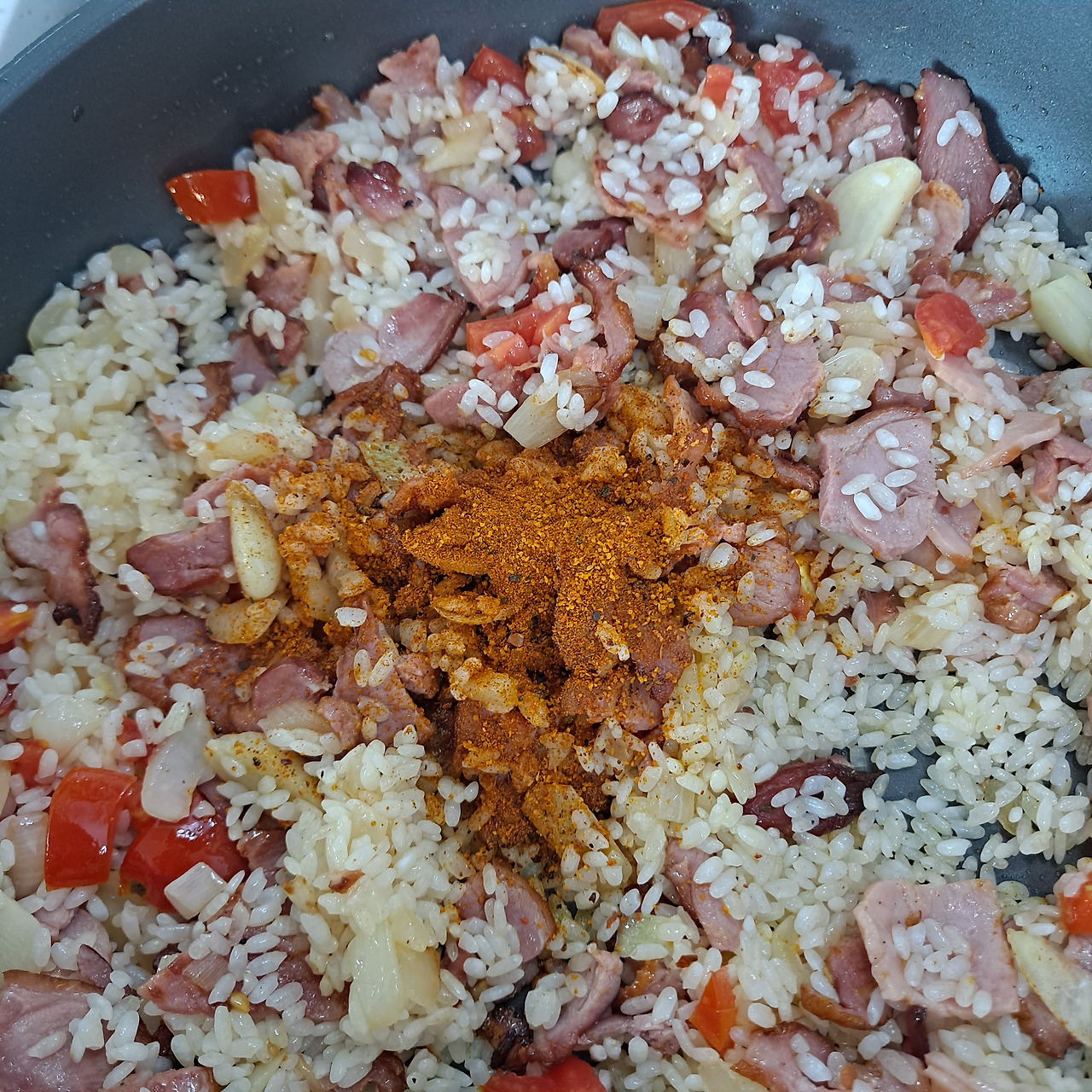 먼저 쌀을 씻어 1시간 정도 불려 놓고 채에 받쳐 물기를 빼놓는다. 동시에 에어프라이에는 오리고기를 굽는다. 프라이팬에 올리브유를 두르고 양파, 마늘, 토마토, 베이컨을 넣고 볶아준 후 불려놓은 쌀과 빠에야 시즈닝 그리고 물을 넣고 섞는다. 뚜껑을 덮고 중간 불에서 10~15분 정도 익혀주면 끝. 바닥이 살짝 눌어붙을 정도로 익으면 딱 알맞다.
