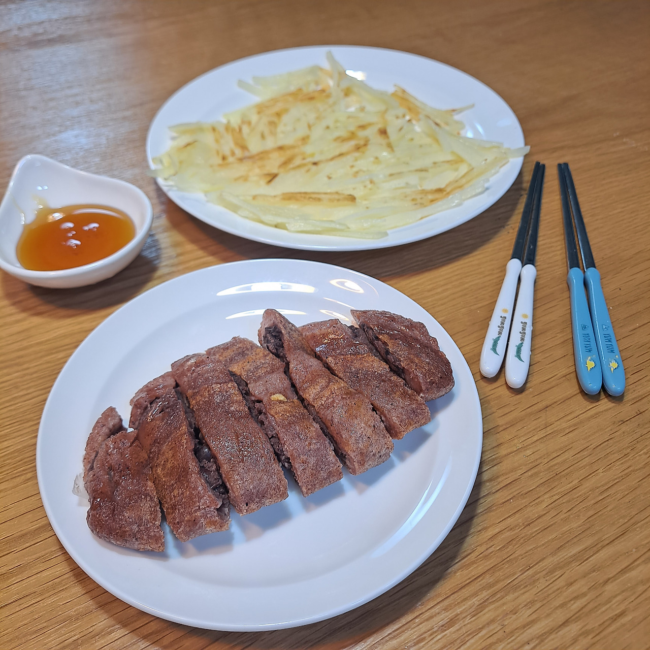 첫째는 수수부꾸미, 둘째는 감자전으로 먹기로 했다. 수수부꾸미는 예전에 광장시장에서 몇 개 사 와서 소중하게 냉동실에 쟁여둔게 있어서 해동 후 잘 굽기만 하면 끝. 둘째는 삶은 감자도, 감자 스프도 싫다고 거부하지만 또 감자전은 기가 막히게 잘 먹는다. 이 놈의 까다로운 취향. 어쩔 땐 정말이지 머리가 아프다. 어쨌거나 잘 먹는 모습을 보니 다행이다 싶다.