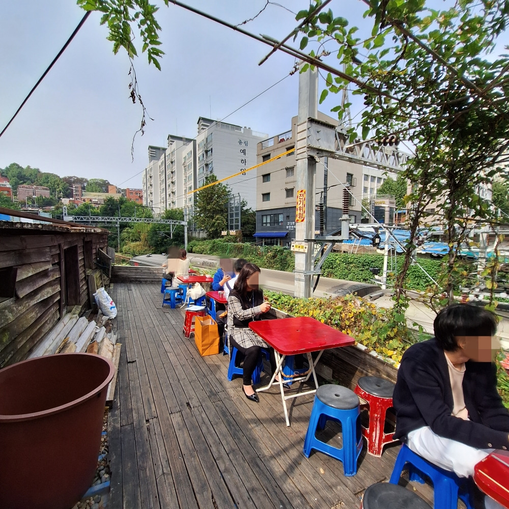 우연히 사진을 접하고 홀린 듯 한참을 쳐다보았다. 야외 테라스 바로 앞에 기차가 지나가는 이색적인 풍경을 바라보며 먹는 떢볶이라니, 생각만 해도 마음이 몽글몽글해지는 기분이었다. 먹킷리스트 1순위로 오른 건 당연지사. 하지만 멀리도 아닌 같은 서울에 살면서도 발걸음을 옮기기가 왜 이리도 힘들던지. 당시 한여름이었던 터라 이 더위만 한풀 꺾이면 반드시 출동하리라고 마음먹었다. 그렇게 '언제 철길떡볶이를 가 볼 수 있을까?'를 속으로 수십 번을 되뇌고서야 드디어 결전의 날이 왔다.