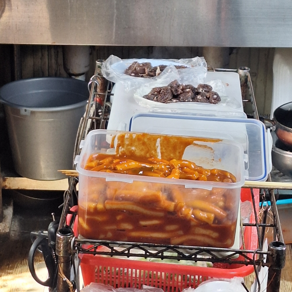 점점 우리 팀 뒤에 대기하는 사람들이 많아졌다. 조금만 늦었어도 못 먹었을 수도 있었겠다며 놀란 마음을 쓸어내리며 동시에 한편으로는 묘한 승리자의 기분도 맛보았다. 앞에는 끽해야 두 팀이 있었는데, 한참을 기다려도 메뉴가 나오지 않았다. 알고 보니 대량 구매하는 큰 손 고객이 있었던 것이다. 10인분의 떡볶이를, 그것도 미리 준비해 오신 김치통에 가득 담아서 말이다. 철길떡볶이에는 떡볶이 철판이 두 개가 있었는데, 둘 중 한쪽에 담겨있던 떡볶이를 거의 다 쓸어갔다.