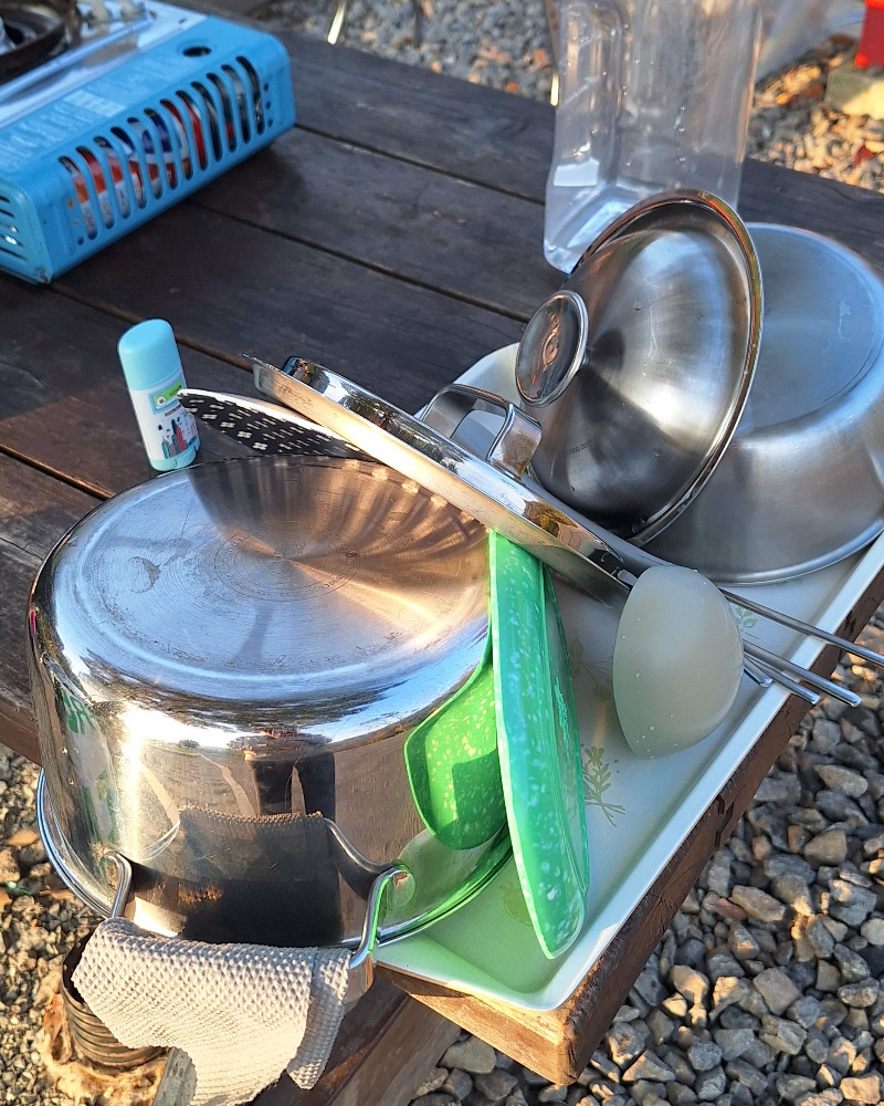맛을 제대로 음미하지도 못한 채, 아이들 수발들며, 남편 눈치 보며, 화를 꾹 참아가며 먹는 고기의 맛은 최악이었다. 바비큐 때문에 캠핑에 온 이유가 절반이었는데 이렇게 허무하게 찬스를 날려버리다니 상상도 못 했던 일이었다. 게다가 점심에 이어 저녁도 설거지를 하면서 '아니 내가 캠핑 준비도 다 했는데, 밖에 나와서까지 똑같이 설거지를 다 해야 해?'라는 생각에 짜증도 스멀스멀 올라왔다. 한참을 뒤틀린 심보는 뭐든 곱게 보이질 않았나보다. '어딜 가나 부엌데기의 삶은 여전하구나.'싶어 신세한탄이 나왔다.