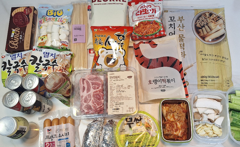 마침 냉동실에 곱게 쟁여둔 떡볶이가 퍼뜩 생각났다. '아, 이때를 위함이구나!' 택배로 주문해서 먹은 떡볶이인데, 마지막 남은 1팩을 좀 더 의미 있게 먹으려고 아껴둔 것이다. 벌써부터 피식 웃음이 나는 걸 보니, 나는 어쩔 수 없는 떡볶이예찬론가이구나. 떡볶이는 2인분이었기에 이것만으로는 부족했다. 아이들을 위해 부산 물떡과 꼬치어묵을 로캣배송으로 주문했다. 떡이고 어묵이고 꼬치에 끼워져 있기에 냄비에 넣고 물만 넣고 끓이는 거라 세상 간단하다. 떡볶이도 역시나 동봉된 소스와 어묵만 넣고 끓이면 되니, 10분이면 뚝딱 준비해서 바로 먹을 수 있겠다 싶었다.
