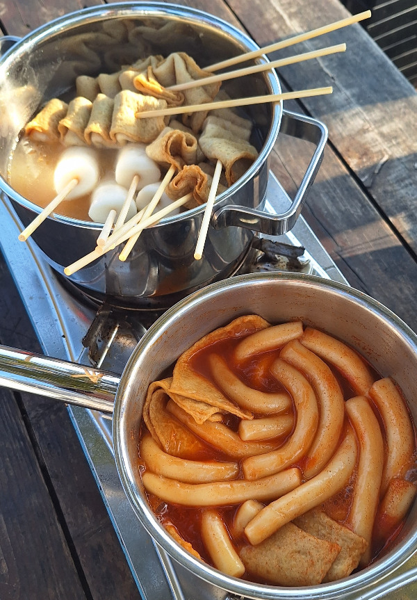 어쨌거나 계획대로 떡볶이의 준비는 순조로웠다. 매점에서 대여한 트윈버너가 이리도 요긴할 줄이야! 동시에 한쪽에는 떡볶이를, 다른 한쪽에는 물떡과 꼬치어묵을 사이좋게 준비했다. 가족들 모두 대만족 하는 성공적인 점심메뉴였다. 따끈한 국물에 쫄깃하고 매콤한 떡볶이가 배에 들어가니 한결 마음도 여유로워졌다.
